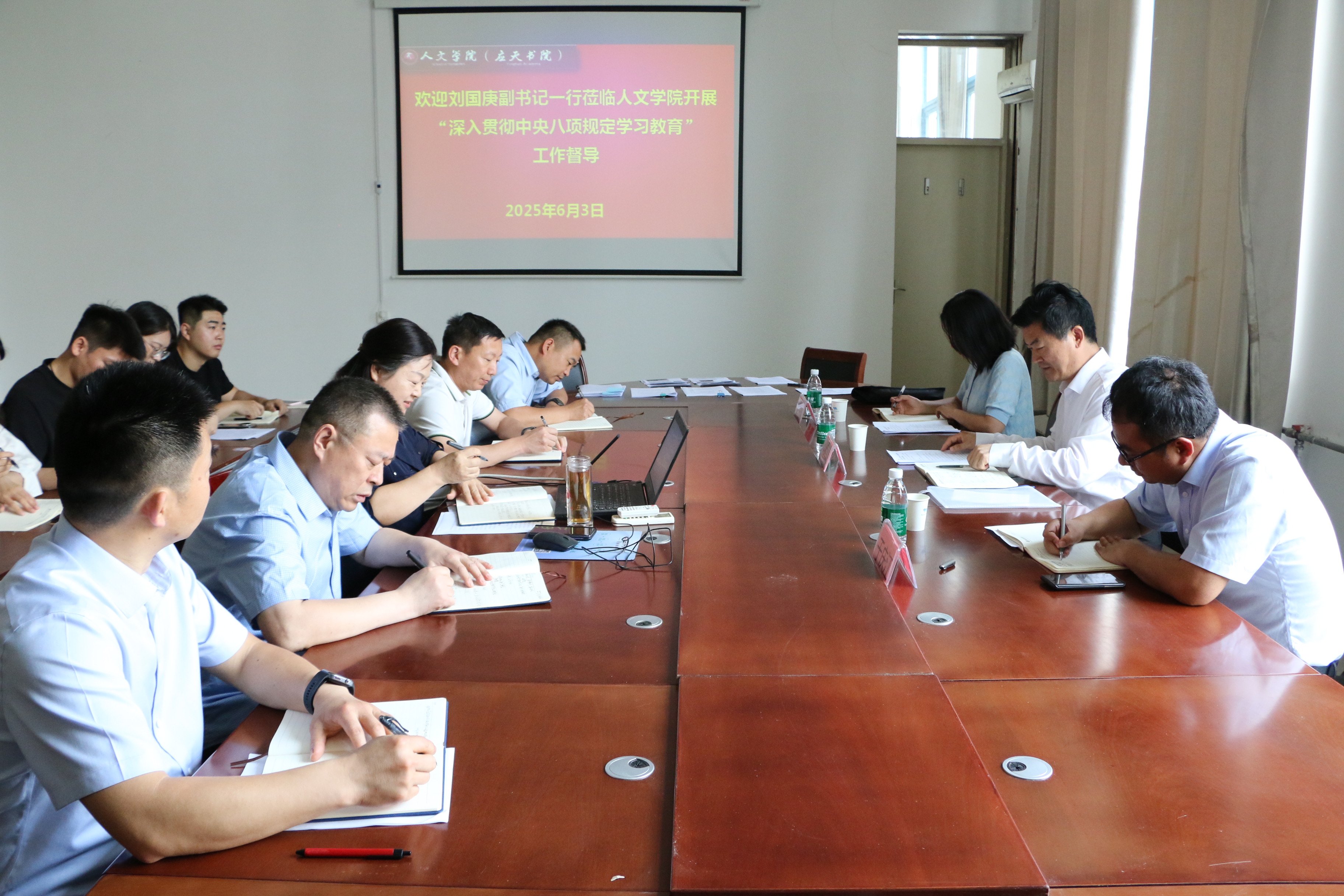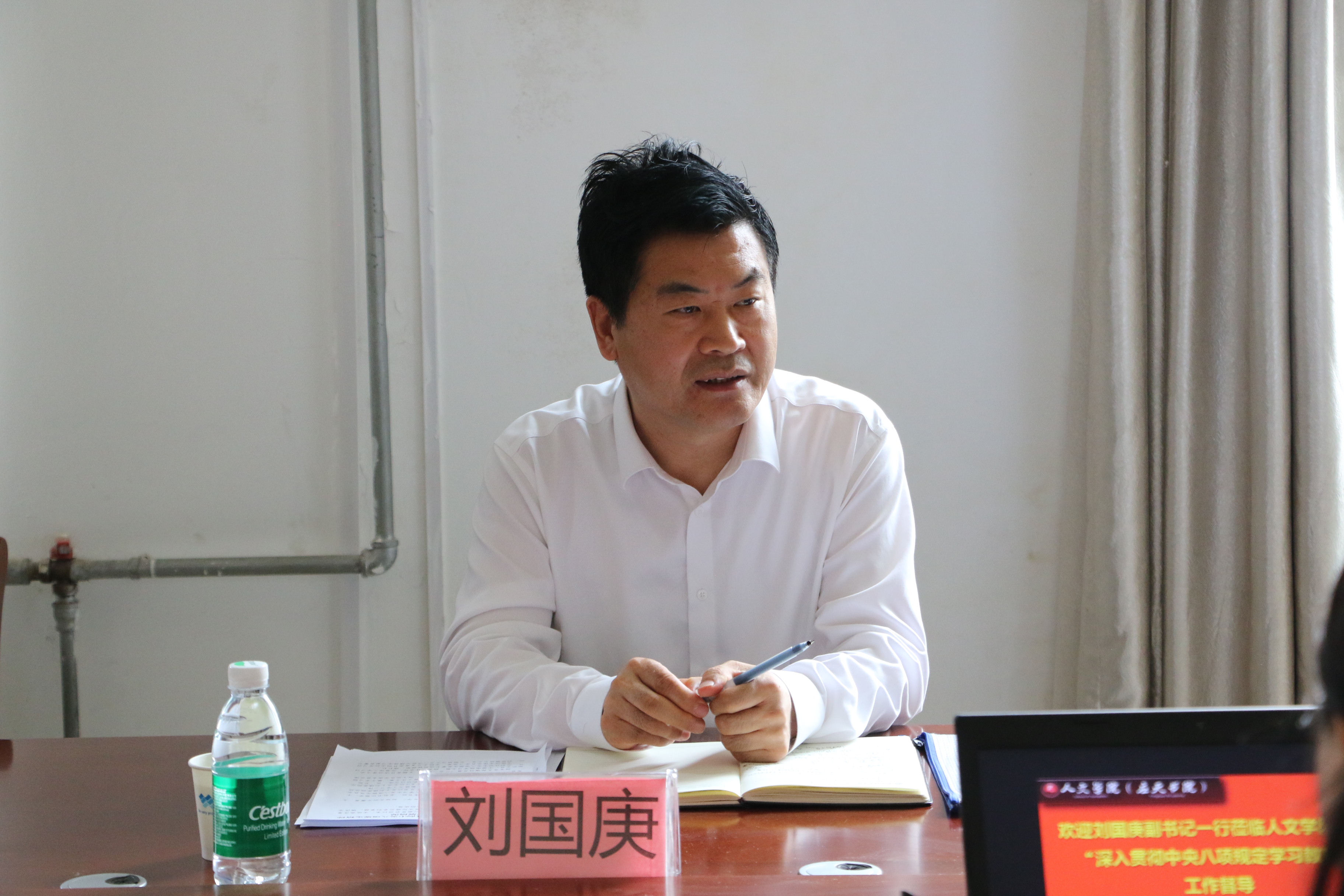 6月3日,校党委学习教育工作第一督导组组长、校党委副书记刘国庚到今年会官网督促检查深入贯彻中央八项规定精神学习教育情况,实地调研学院工作。