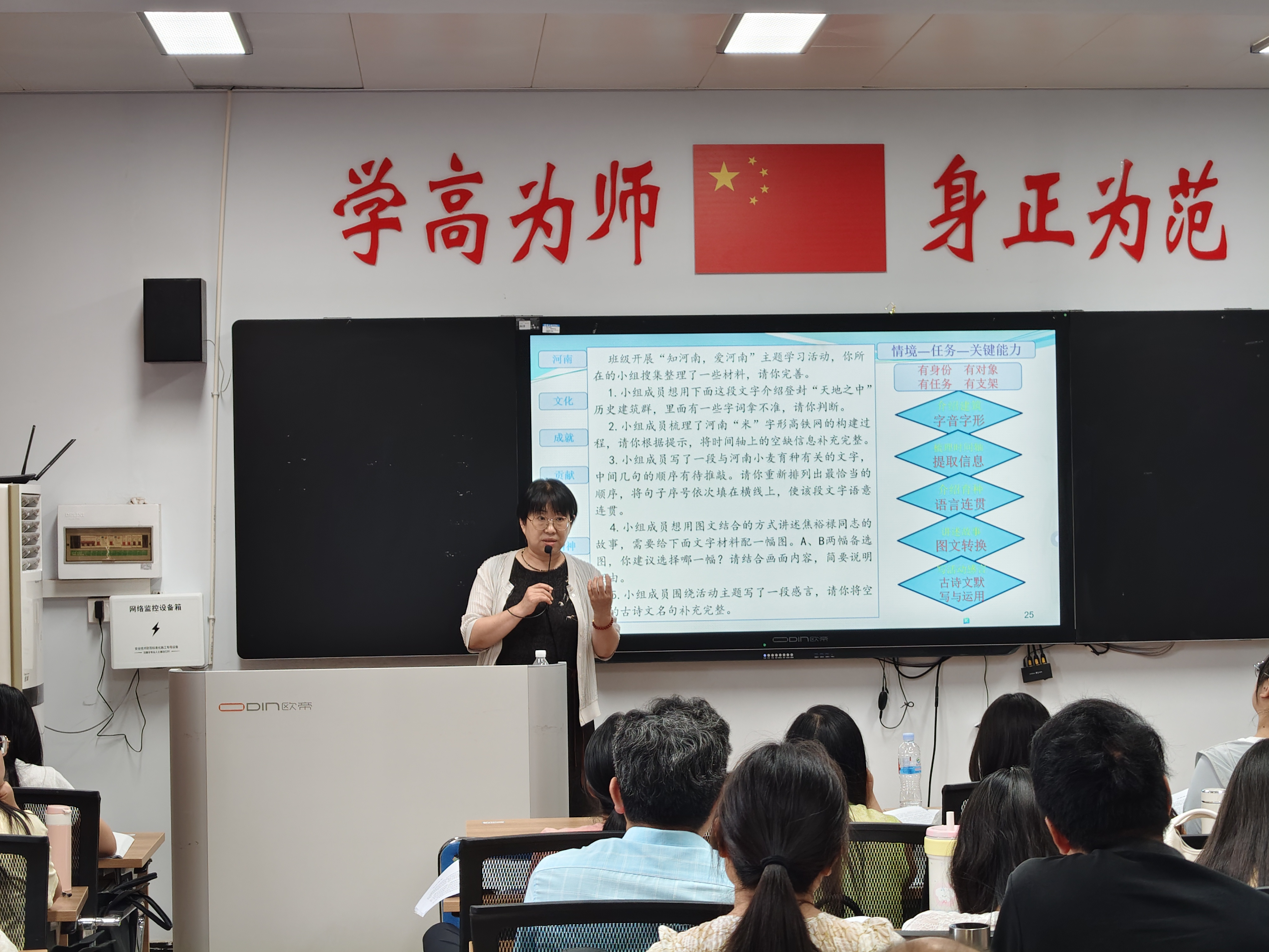 2025年8月6日,河南省基础教育课程与教学发展中心丁亚宏主任应邀来到今年会jinnianhuicom睢阳校区,为“国培计划2025”——今年会jinnianhuicom潢川县级骨干教师能力提升初中语文班授课。上午,丁亚宏主任以“初中语文2022课程标准的核心理念与关键突破”为题,指出教师要以“文化自信、语言运用、思维能力、审美创造”为纲,依托真实情境设计教学任务,把“阅读与鉴赏、表达与交流、梳理与探究”融为一体。