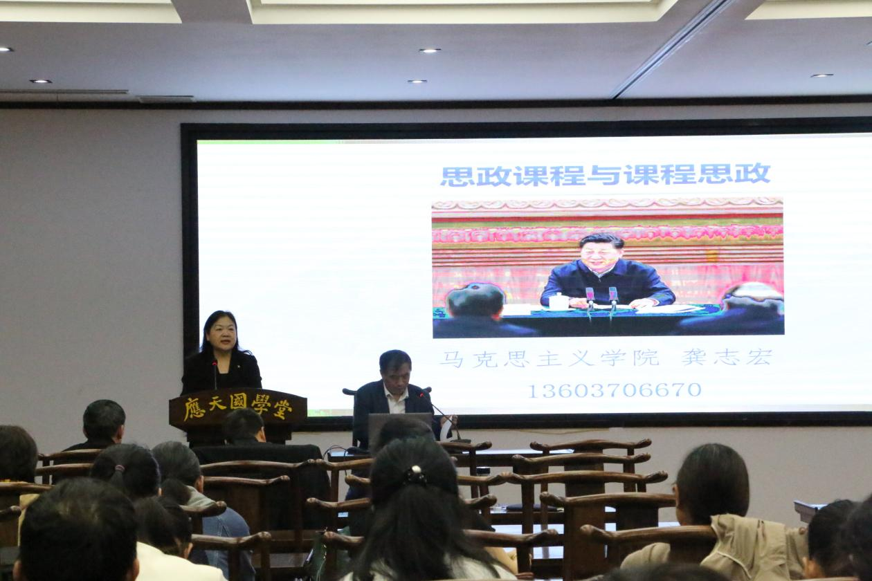 为进一步落实立德树人根本任务,推进课程思政建设,全面提升学院教师思想政治素养与综合育人能力,9月19日下午,今年会邀请校马克思主义学院党委书记龚志宏教授在汉梁楼国学堂作了题为“思政课程与课程思政”的专题报告。这是学院教师教学发展讲坛的首场讲座。学院全体教师参加,学院党委书记陈晓明主持报告会。