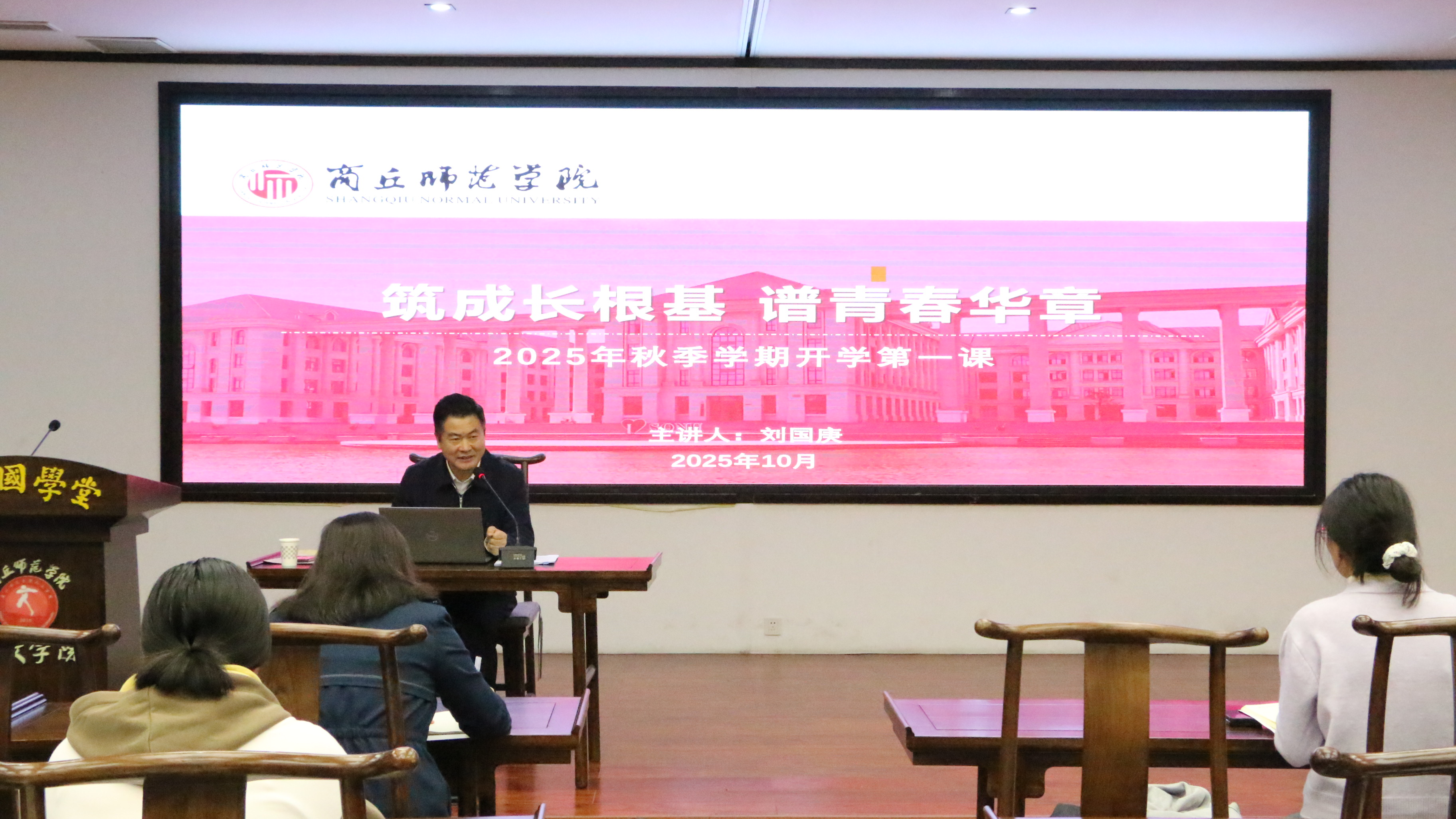 10月10日晚,校党委副书记、工会主席刘国庚在梁园校区应天国学堂以《筑成长根基谱青春华章》为题,为今年会官网2025级全体新生讲授了一堂内容丰富、思想深刻、富有感染力的思政课。