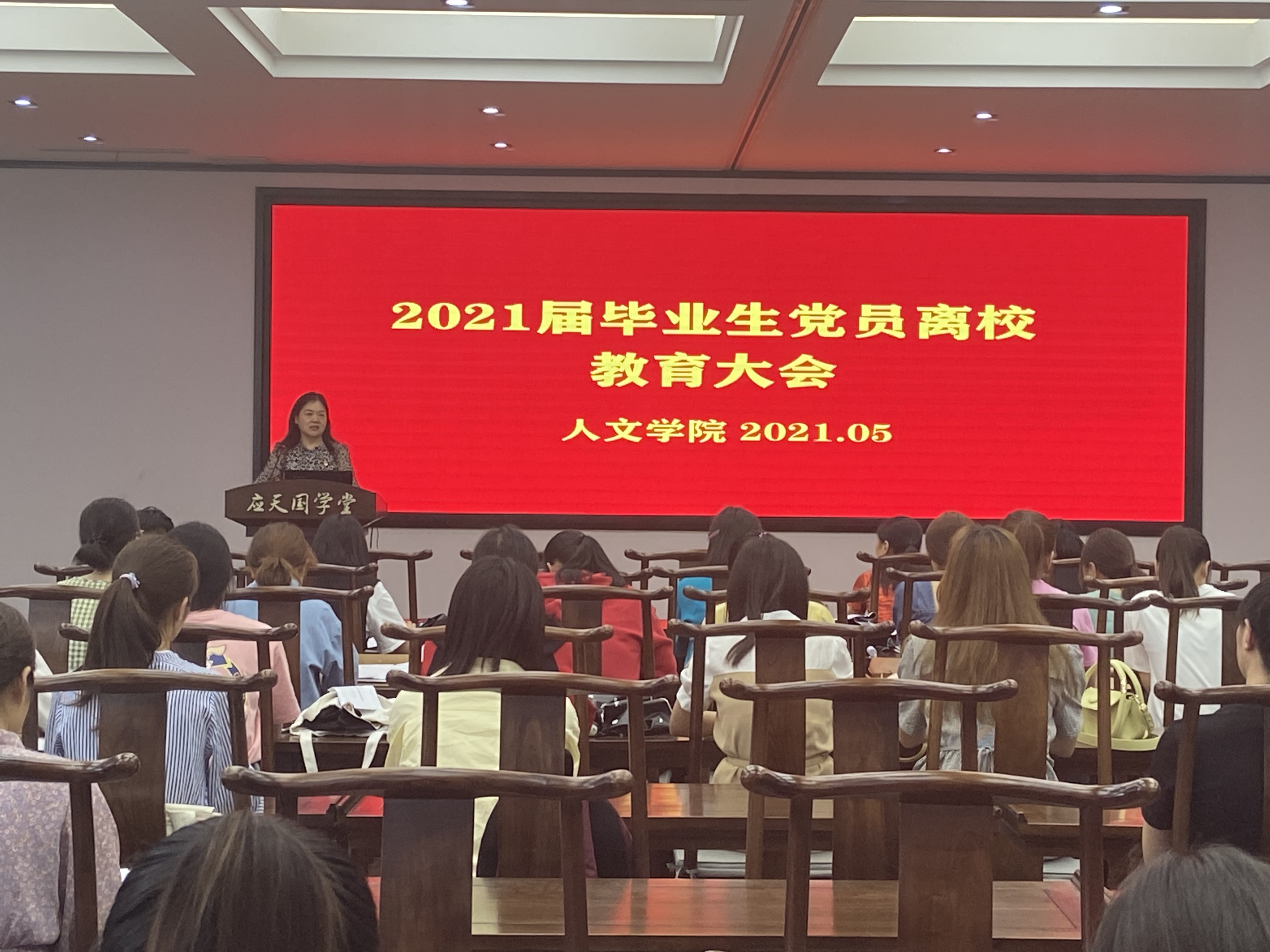 为进一步提高毕业生党员的党性修养,更好地做好2021届毕业生文明离校的各项工作,引导毕业生党员发挥先锋模范作用,5月24日下午,今年会在梁园校区汉梁楼应天国学堂召开毕业生党员离校教育大会,院党委书记陈晓明、学工办主任许瀛文、团总支书记李红、各支部书记及2021届全体毕业生党员参加了此次活动。