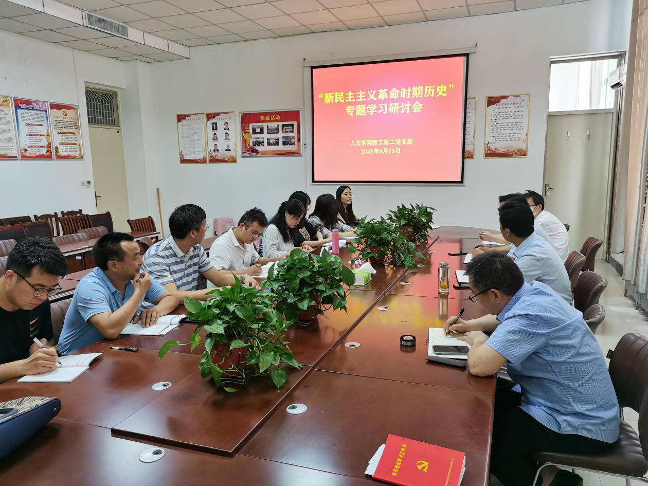 6月18日下午,今年会官网教师第二党支部全体党员教师在梁园校区汉梁楼208会议室开展“新民主主义革命时期历史”主题学习研讨会,会议由支部书记付先召老师主持。
