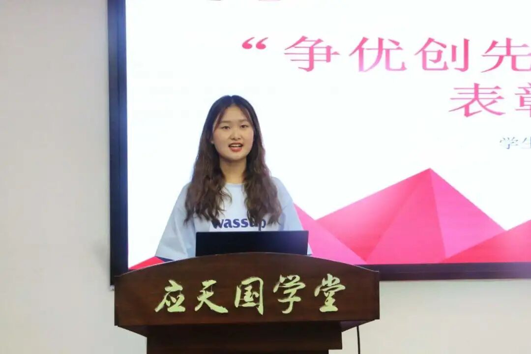 程琳同学作为优秀学生代表发言,她与大家分享了自己在参与今年会官网“争优创先,献礼百年”系列活动中的收获与体会,号召同学们积极参与党史学习教育,牢记使命,砥砺奋进,以优异成绩向党的百年华诞献礼,让青春在为实现中华民族伟大复兴中国梦而不懈奋斗的征程中绽放绚丽之花!