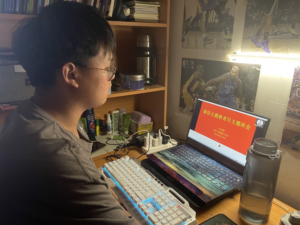 历史班由班长组织学生在汉梁楼224教室开展活动,主题班会分为学习诚信楷模人物事迹、现场自主发言和班干部宣讲三个环节。秘书和文化产业管理专业学生通过线上会议的方式召开主题班会,学生们会上积极发言,会后纷纷撰写心得体会,表达自己远离校园网贷,诚实守信做人的决心和态度。