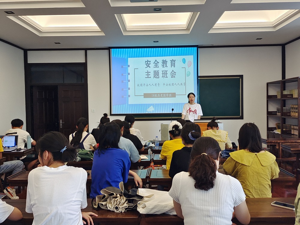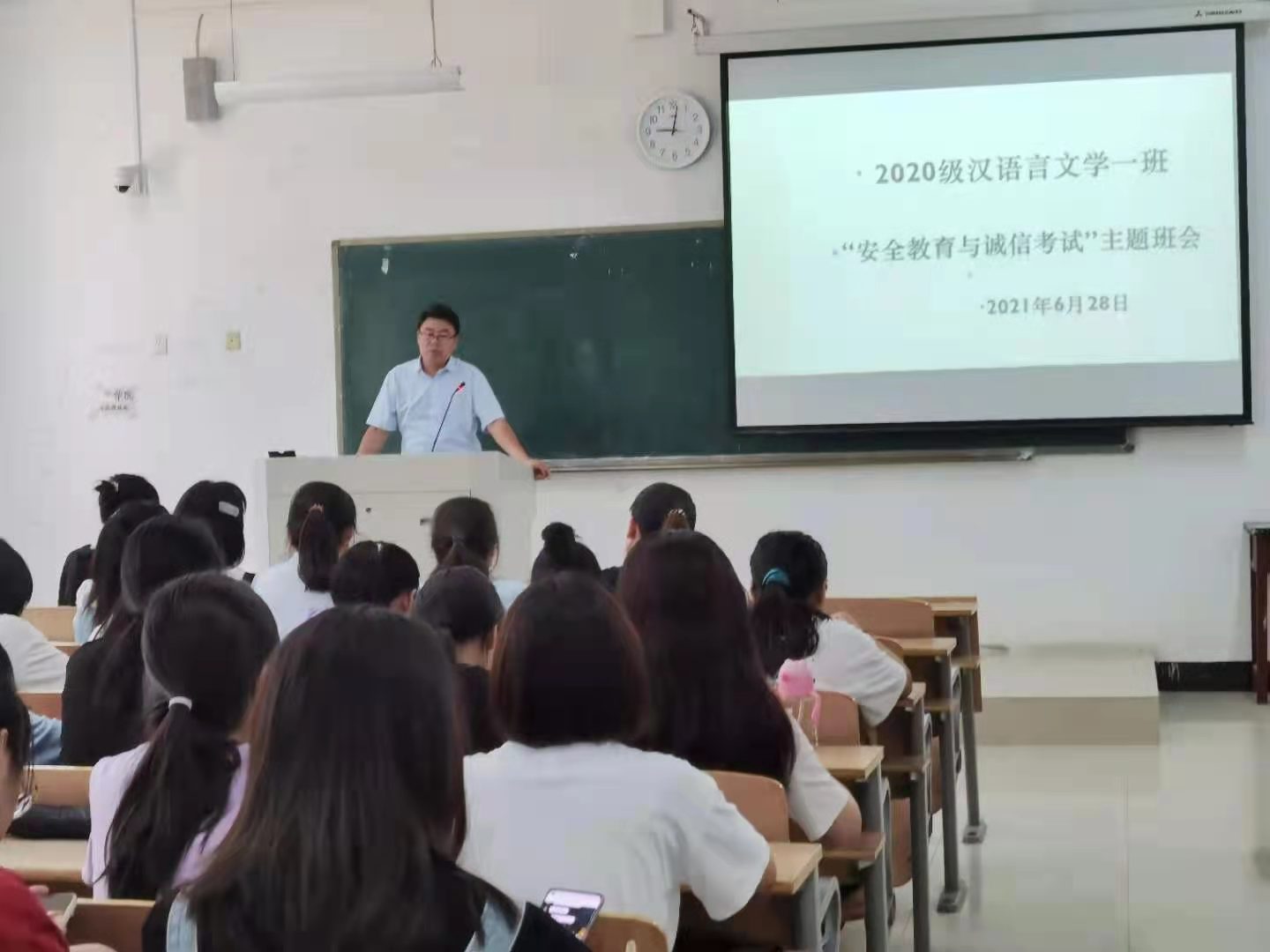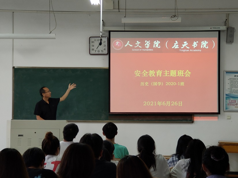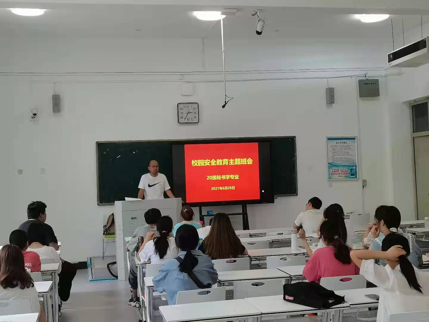 各班级班主任结合学生所处年级和专业等实际情况,通过主题宣讲、小组讨论和案例讲解等不同方式开展活动,班会内容主要包括以下几点:第一,重视宿舍消防安全,规范宿舍用电安全;第二,保护网络信息安全,不信谣,不传谣,不在网络上传播负能量;第三,注重假期安全防范,保护自身安全;第四,做好期末复习,诚信迎接考试。
