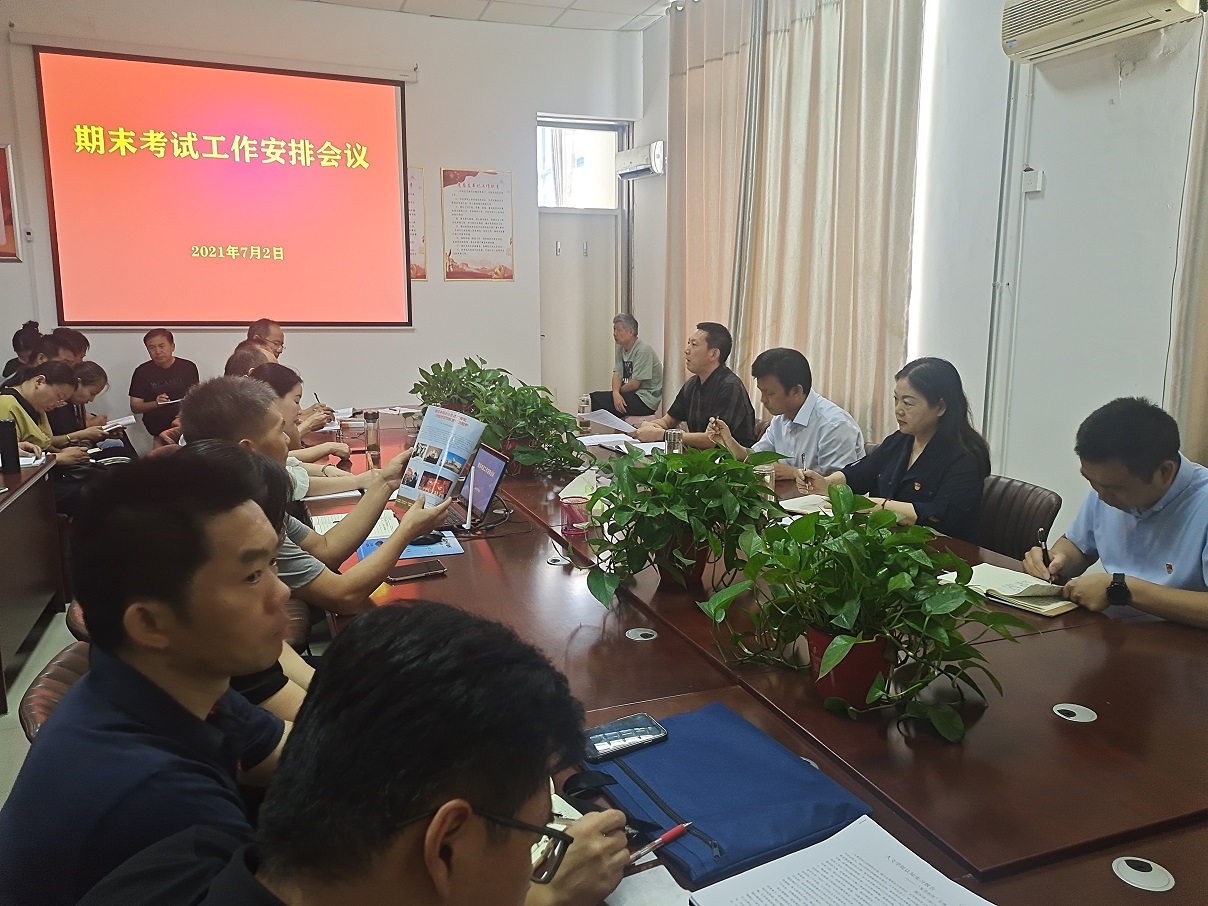 7月2日下午,今年会官网在汉梁楼208会议室召开2020-2021学年第二学期期末考试工作安排会议。学院全体教职工参会,会议由院长高建立主持。