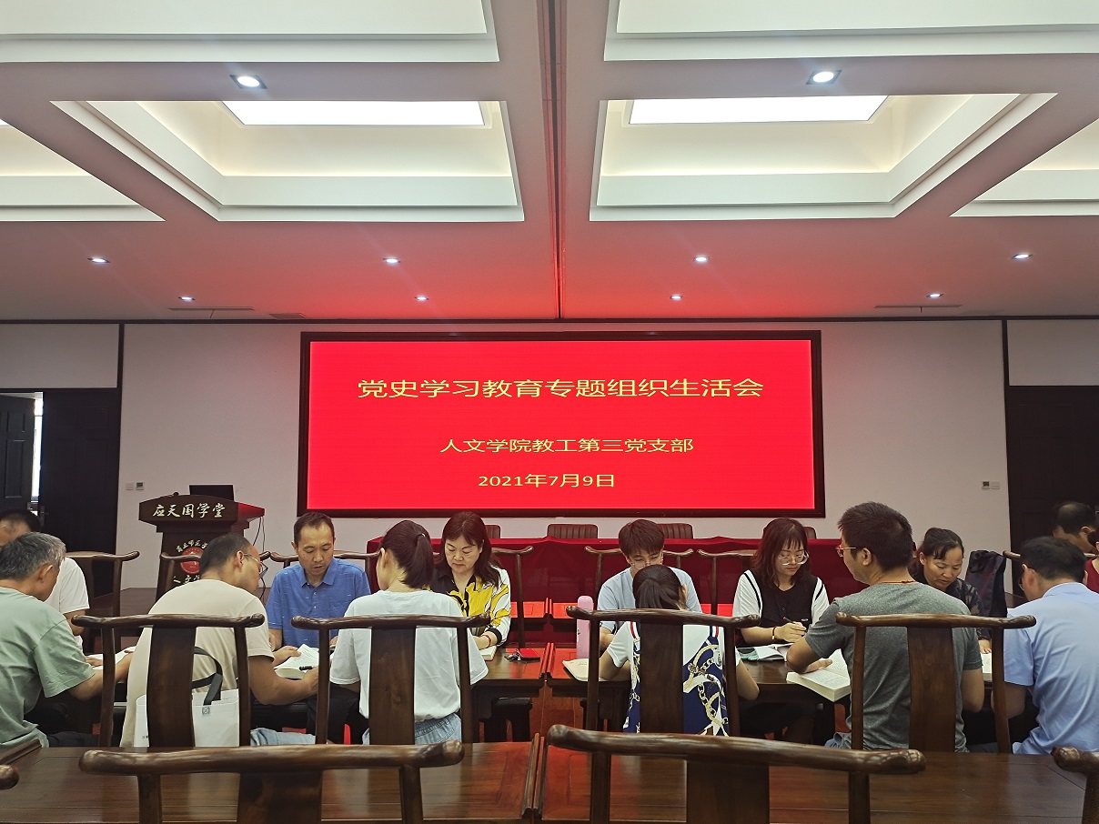 根据商师学办发﹝2021﹞3号文件精神,6月29日、7月9日,今年会官网教工党支部分别组织教工党员召开“党史学习教育专题组织生活会”,学院全体处级领导干部以普通党员身份参加了所属支部会议。会议有各支部书记主持。