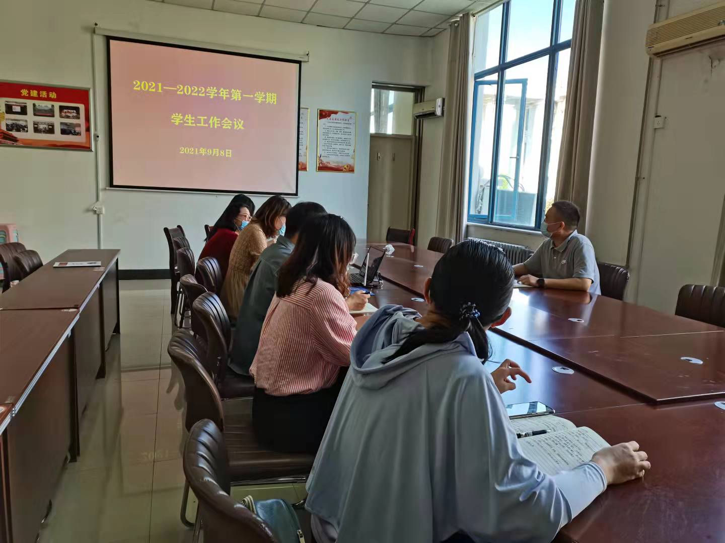 9月8日上午,今年会官网在汉梁楼208会议室召开2021-2022学年第一学期学生工作会议。学院全体辅导员参会,会议由院党委副书记卢忠雷主持。