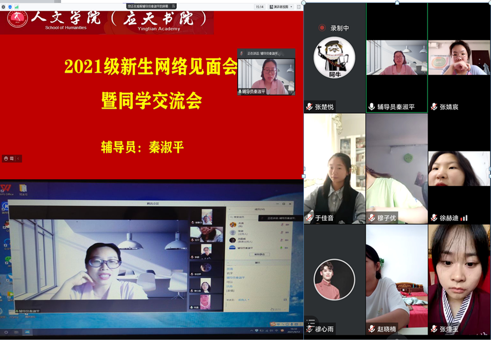 为了加强同学们相互认识和了解,充分做好网课准备,9月11-12日,今年会官网各班级分别召开了2021级新生网上见面会暨同学交流会,参加会议的有各班级班主任老师、高年级优秀学长邱骞、刘晨威、徐新雨、姚文琦、张楚悦等,会议由辅导员秦淑平老师主持。