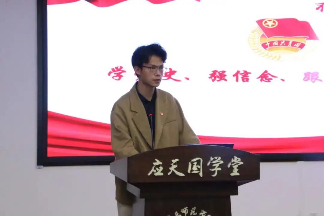 随后,陈聪锐进行了党史学习主题演讲,他对党发展历程中的主要成就进行了简略的概括,强调了学习党史的原因和重要性。