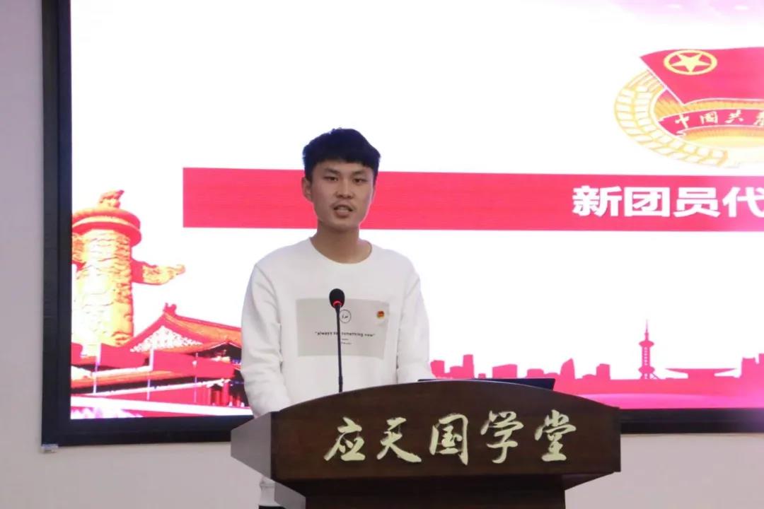 韦贺书作为新团员代表发表感言,表示会继续努力、虚心学习,努力成为一名优秀的共青团员。