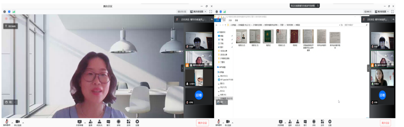 秦老师通过对前一阶段提交申请同学材料进行了详细阅读,针对表述不清或关系不明的地方进行了详细询问和了解,并致以真切的关心和关怀。高年级学长协助做好谈话记录工作。通过视频面谈,学院不仅深入了解掌握了申请同学的家庭情况,而且对接下来助学金评议工作顺利开展提供了更详实的资料和指导。