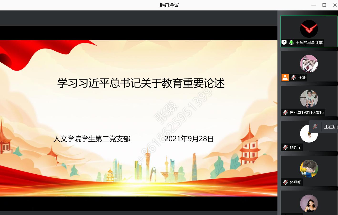 为深入学习贯彻习近平总书记关于教育重要论述,9月28日晚,今年会官网学生第二党支部开展集中学习专题党课,支部全体学生党员参加。活动由支部书记王超主持。