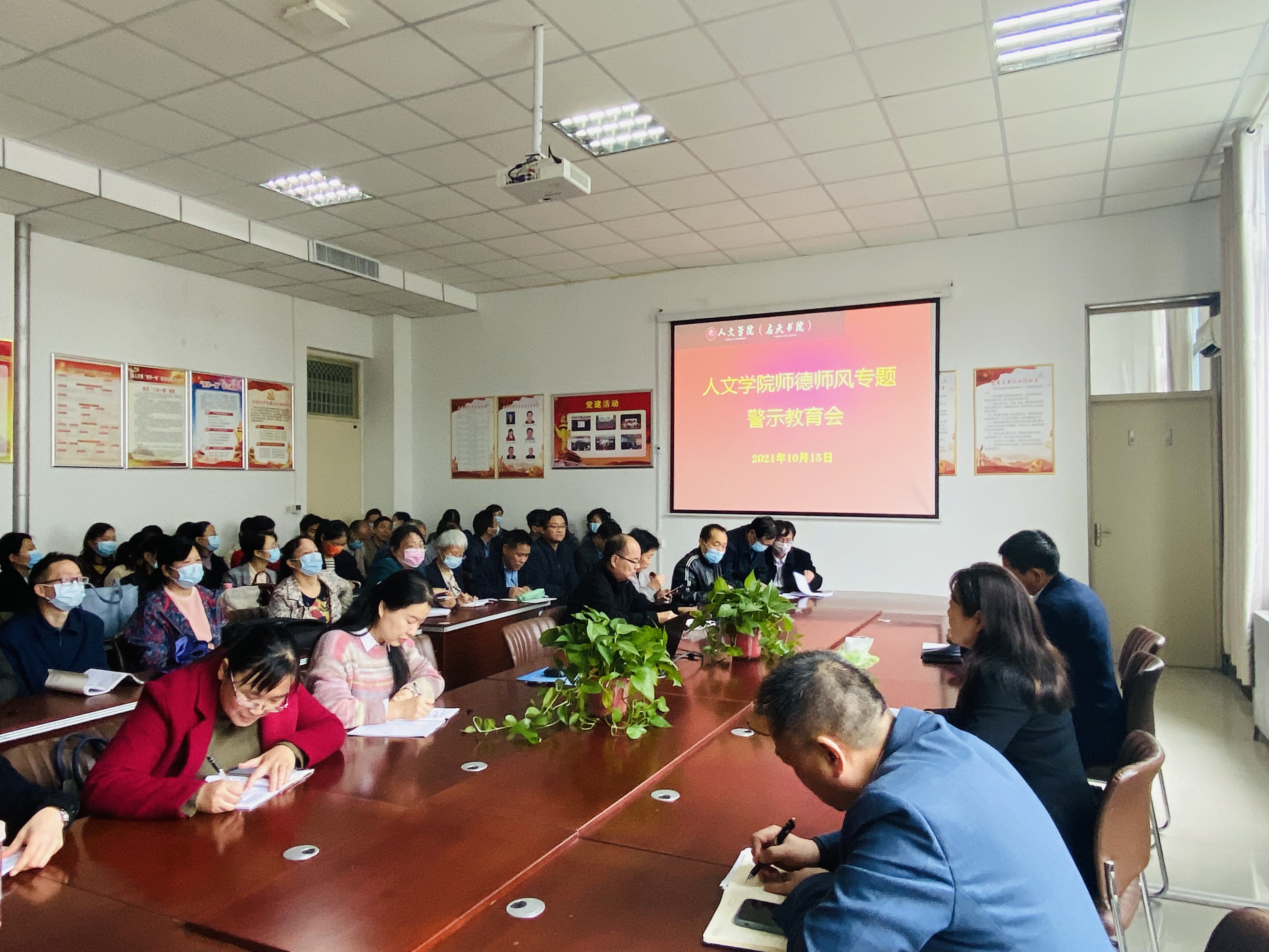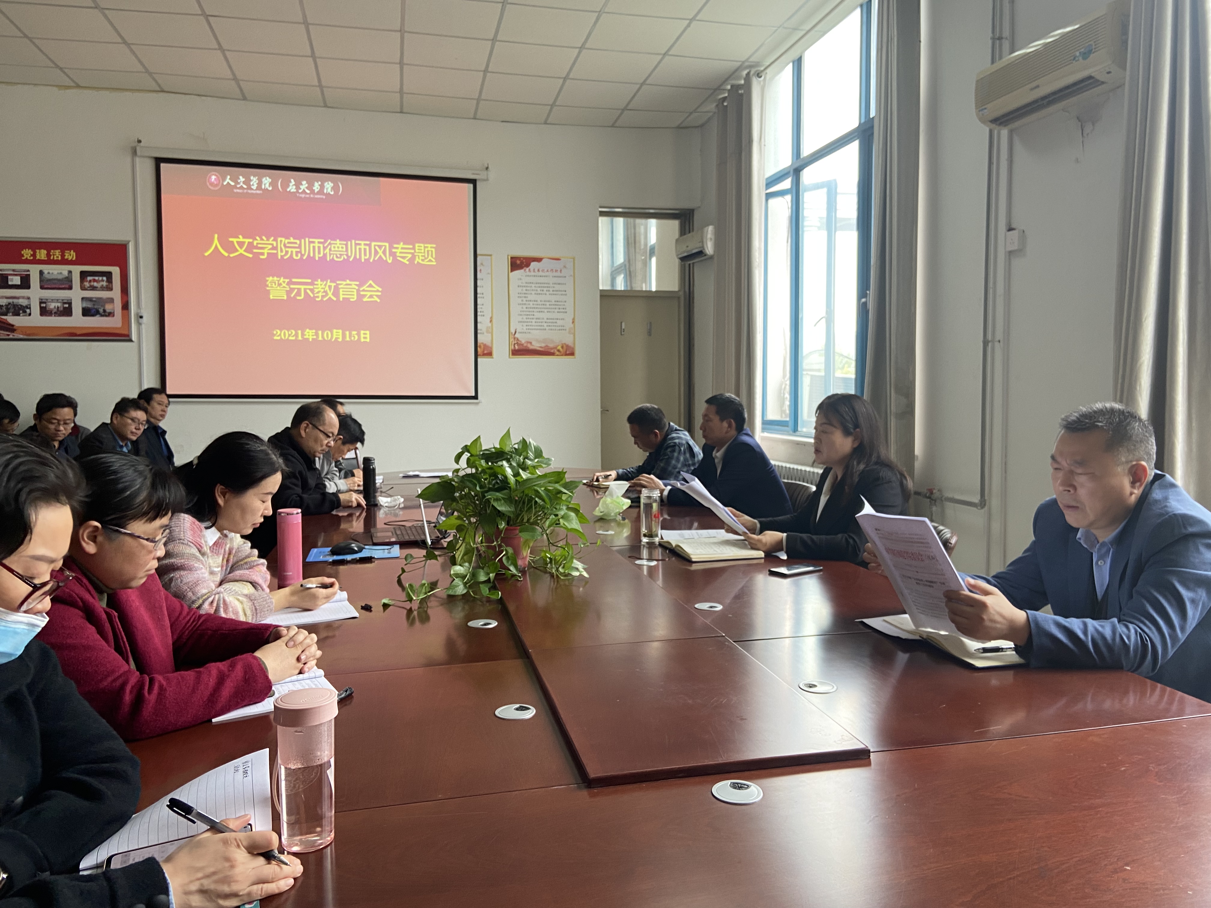 为深入学习贯彻习近平总书记关于教育的重要论述和全国教育大会精神,全面加强师德师风建设,贯彻落实好学校相关会议精神,10月15日下午,今年会官网在汉梁楼208会议室召开师德师风警示教育大会,学院全体教师参加会议。会议由学院党委书记陈晓明主持。