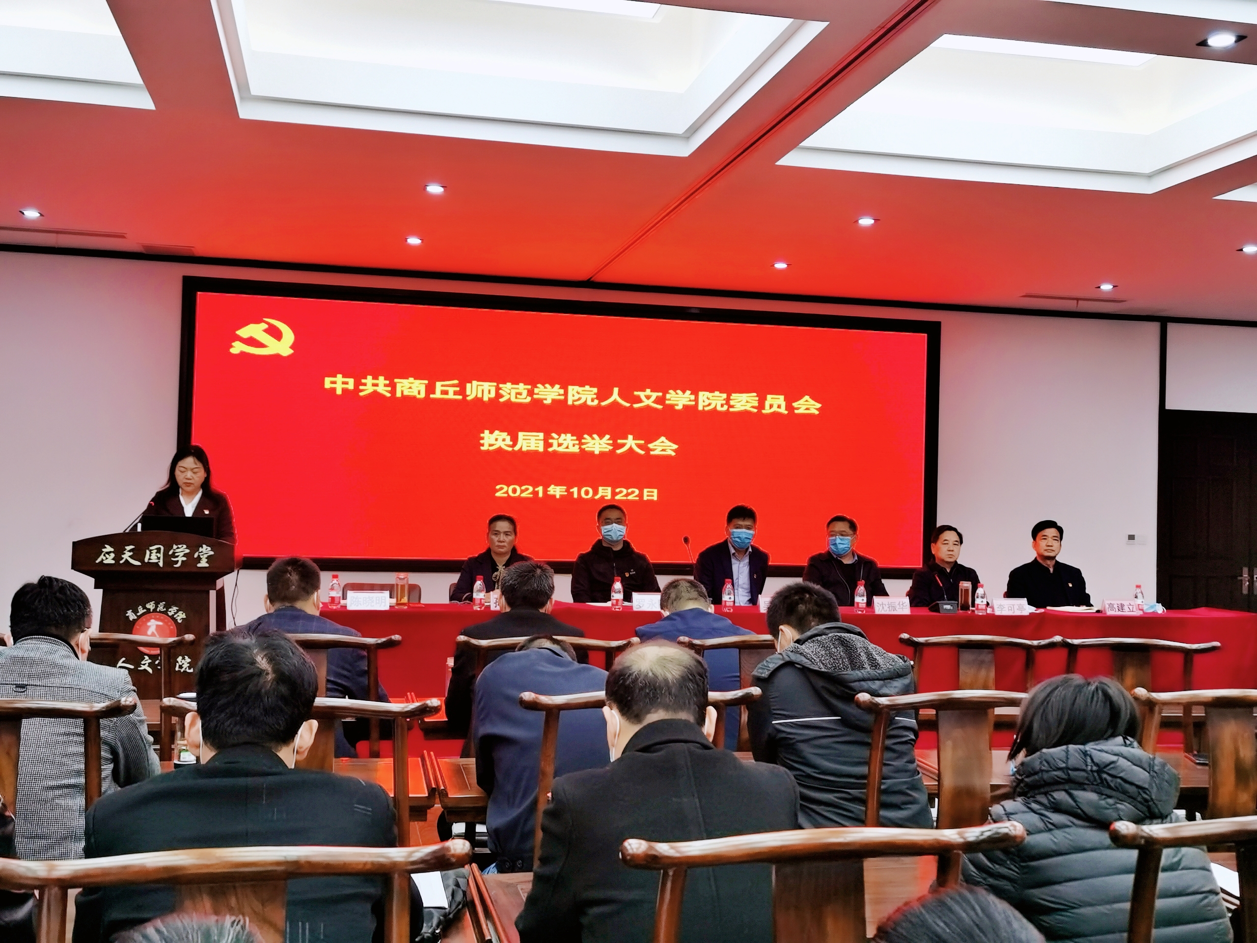10月22日下午,今年会官网按照《中共今年会jinnianhuicom委员会基层党组织换届选举工作方案》要求,在汉梁楼国学堂召开党委委员换届选举大会。校党委副书记吴金山、党政办公室主任沈振华和组织部副部长罗永刚出席会议,学院全体党员参加会议,副院长李卫军应邀列席会议。会议由学院上一届党总支书记孙海芳主持。