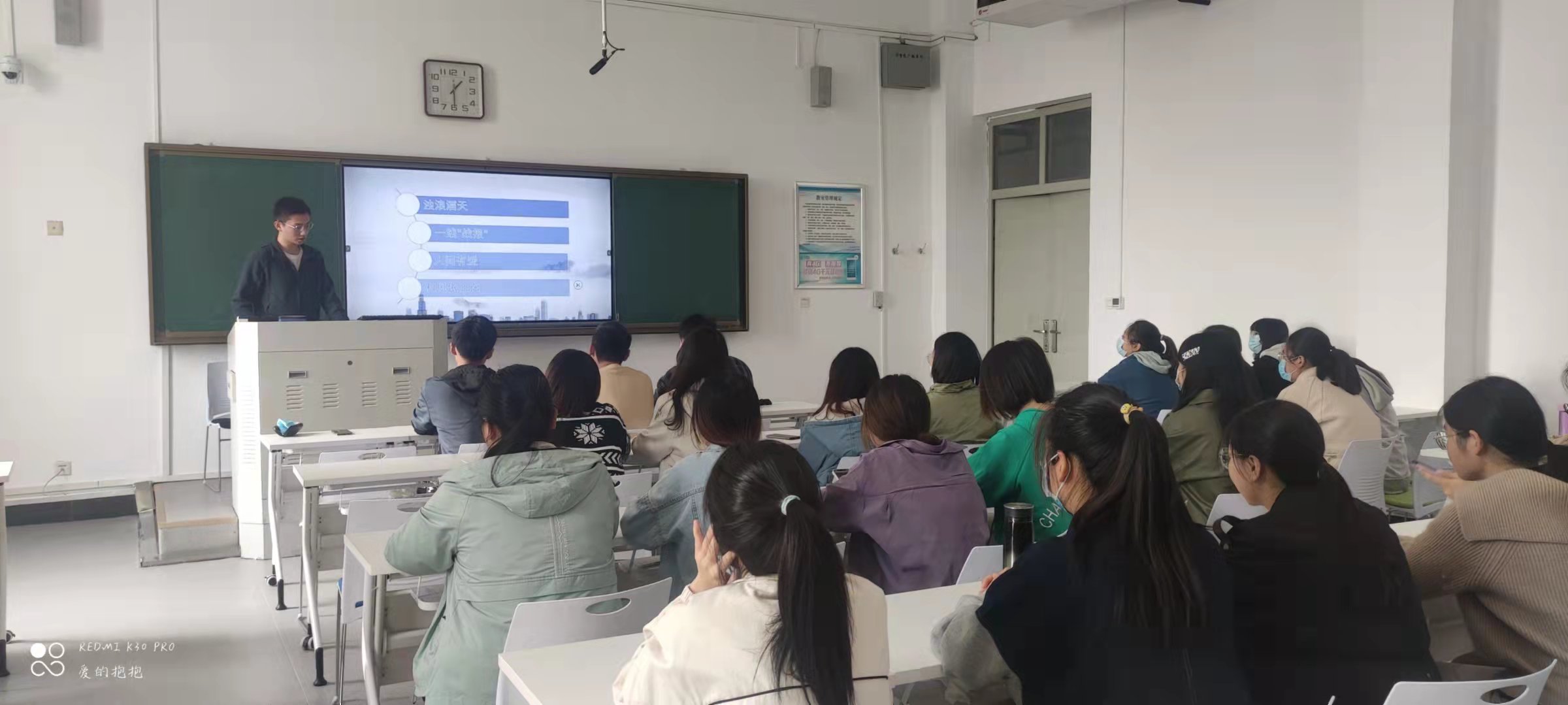 随后,邱骞总结到:洪灾、疫情固然可怕,但在灾难面前中国人民总是能团结一致、一方有难、八方支援,共同携手走出灾难。此外,他还提醒同学们虽然疫情已经的到控制,但我们依然需要增强防疫意识,保护好自己。