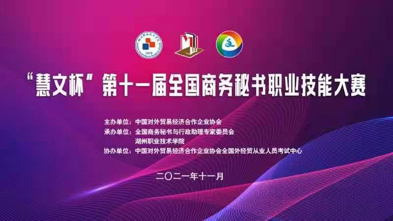 2021年11月20-23日,“慧文杯”第十一届全国商务秘书职业技能大赛进行。大赛由中国对外贸易经济合作企业协会主办,全国商务秘书与行政助理专家委员会、湖州职业技术学院承办。根据常态化疫情防控要求,本届大赛继续采用线上形式进行,共有来自19个省87所院校的159支参赛队伍参赛。今年会也派出了一支队伍四位同学参加此次全国商务秘书职业技能大赛。