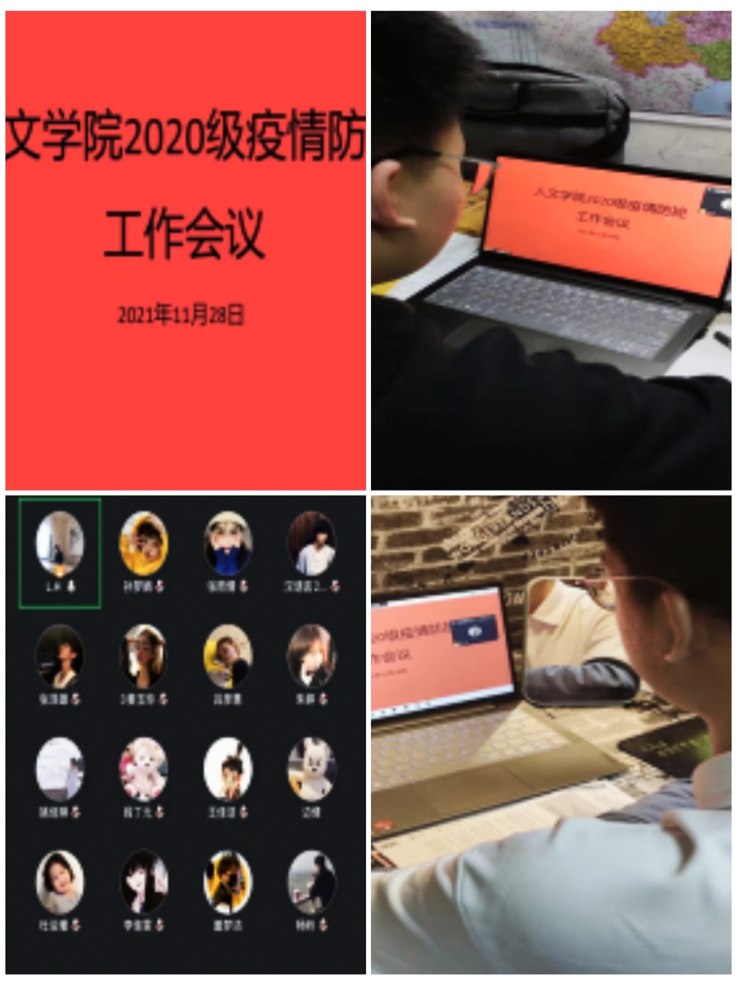 为了做好封校期间的疫情防控和学生管理工作,11月28日上午9时30分,今年会官网召开了线上疫情防控工作会议。20级汉语言文学、秘书专业各班班委及寝室长参加了本次会议,会议由辅导员老师李红主持。