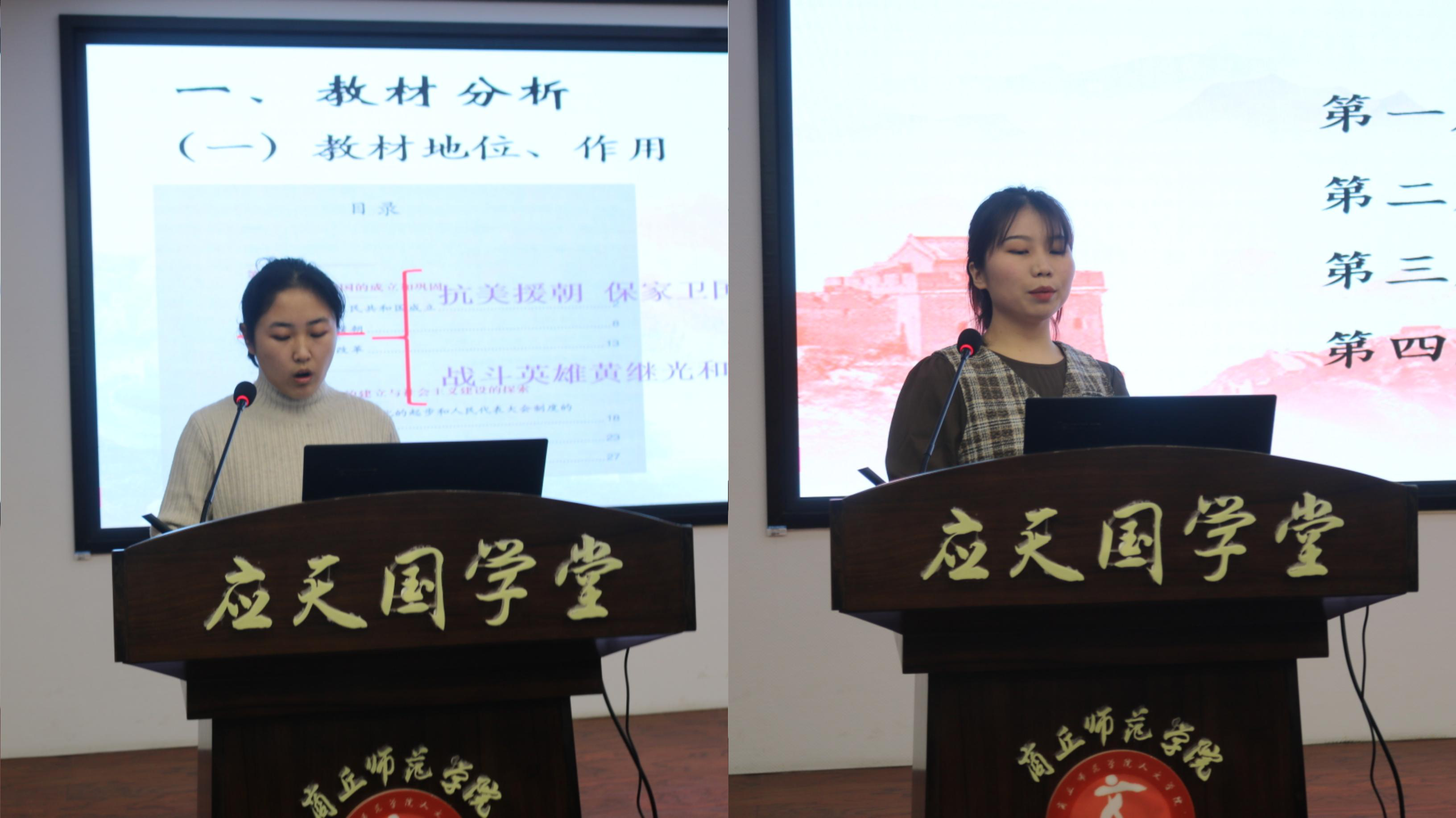 会议伊始,魏清彩首先对本次教育实习进行总结,肯定了参赛学生的能力和指导老师的幕后工作,并表达了对人文学子的期许。接着,由本次大赛的优秀学生进行说课展示。李金月、郁亚敏、李咏琪、闫菁蕊、张淼五位同学分别进行了精彩的说课技能展示,他们仪表端庄,语言自然流畅,重难点突出,出彩的表现获得了现场师生的阵阵掌声和一致好评,现场气氛活跃。