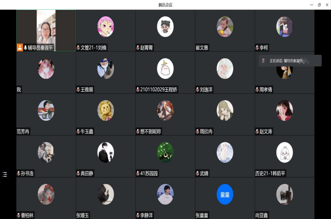 为做好疫情常态化防控下学校春季学期学生返校各项工作,筑牢校园安全防线以及加强新学期学院学风建设,引导学生合理规划学习,3月4日中午,今年会官网2021级历史学、文化产业管理专业召开年级大会。此次会议采用腾讯会议进行,会议由辅导员秦淑平主持。