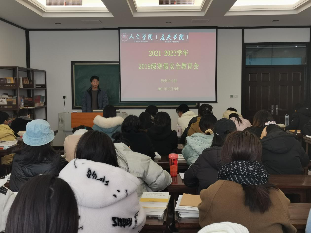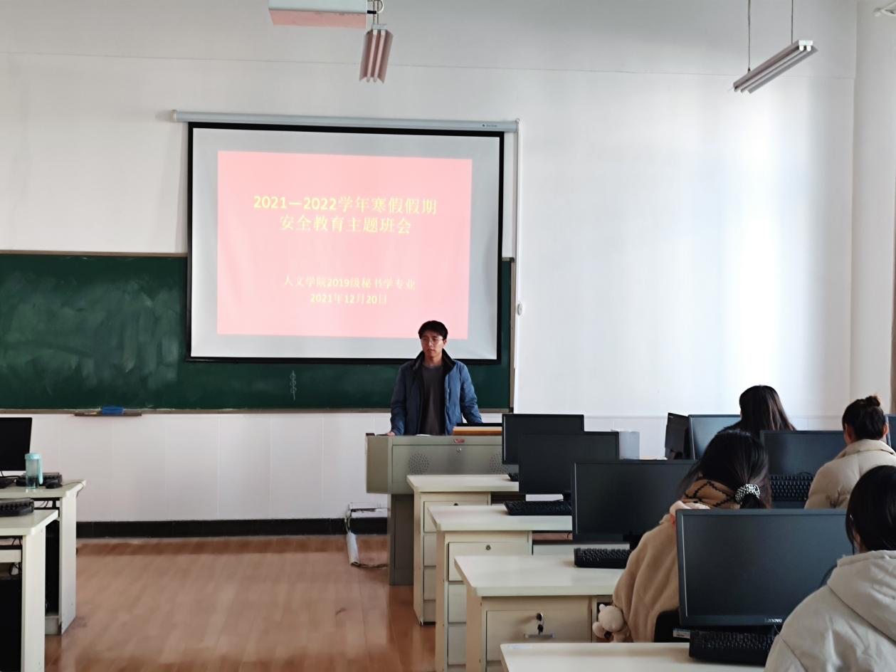 为了提高学生自我安全保护意识,增强自我防范能力,12月17日-20日,今年会官网2019级历史、秘书、文化产业管理专业学生召开2021-2022学年寒假安全教育主题班会。会议由辅导员王超主持。