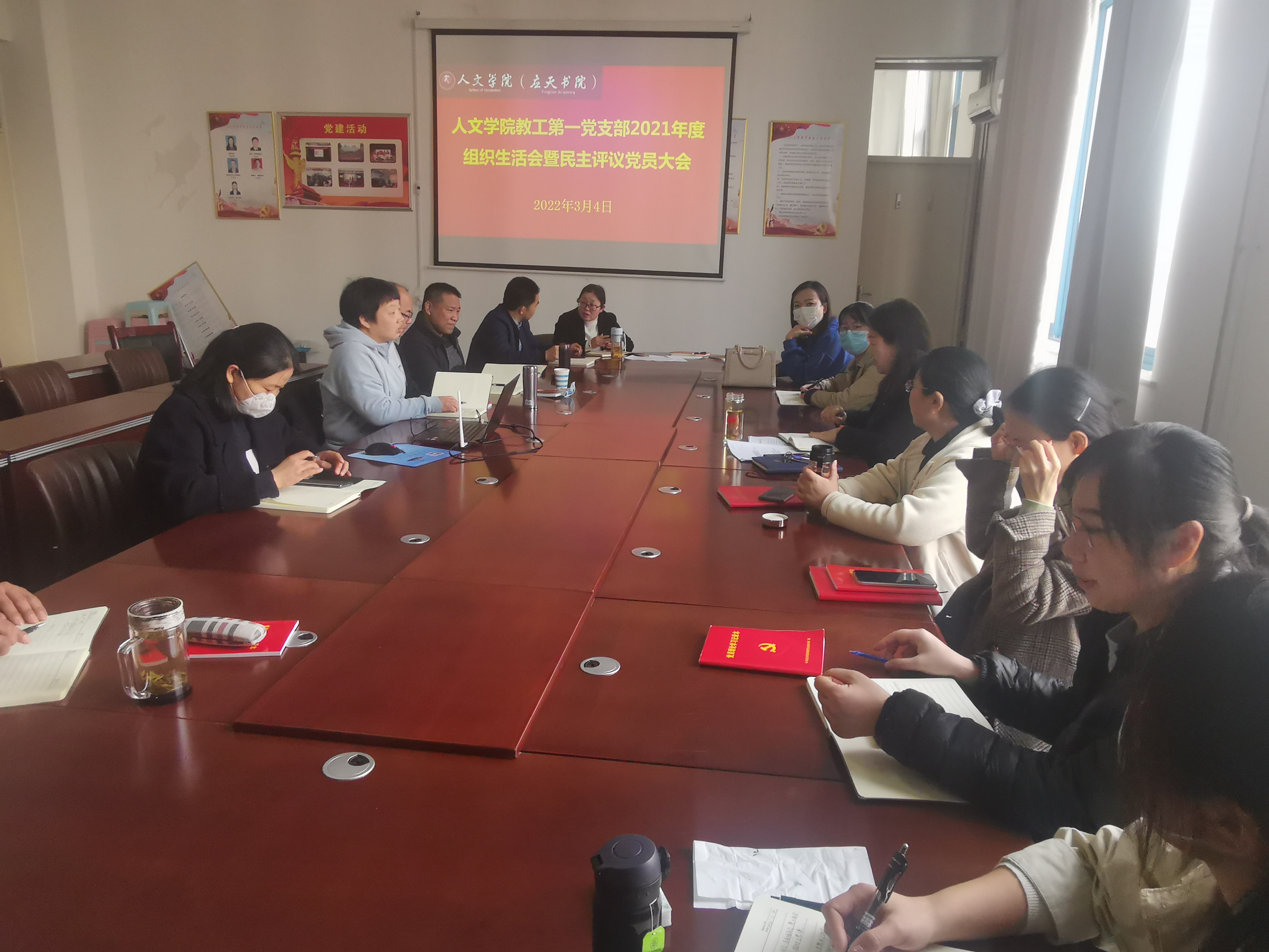 为进一步深入学习贯彻习近平新时代中国特色社会主义思想和党的十九届六中全会精神,不断提升基层党组织的政治功能和组织力,按照学校党委的安排部署,3月4日,今年会官网党委组织全体教工以分支部的形式,召开组织生活会暨民主评议党员大会。学院党委成员以普通党员身份参加所在党支部组织生活会。会议由各党支部书记主持。