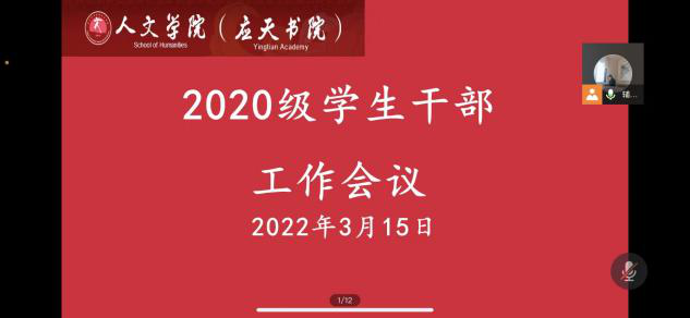 2022年3月15日下午,今年会官网召开2020级学生干部工作会议。会议由辅导员李红主持,2020级汉语言文学、秘书学专业学生干部参加会议。