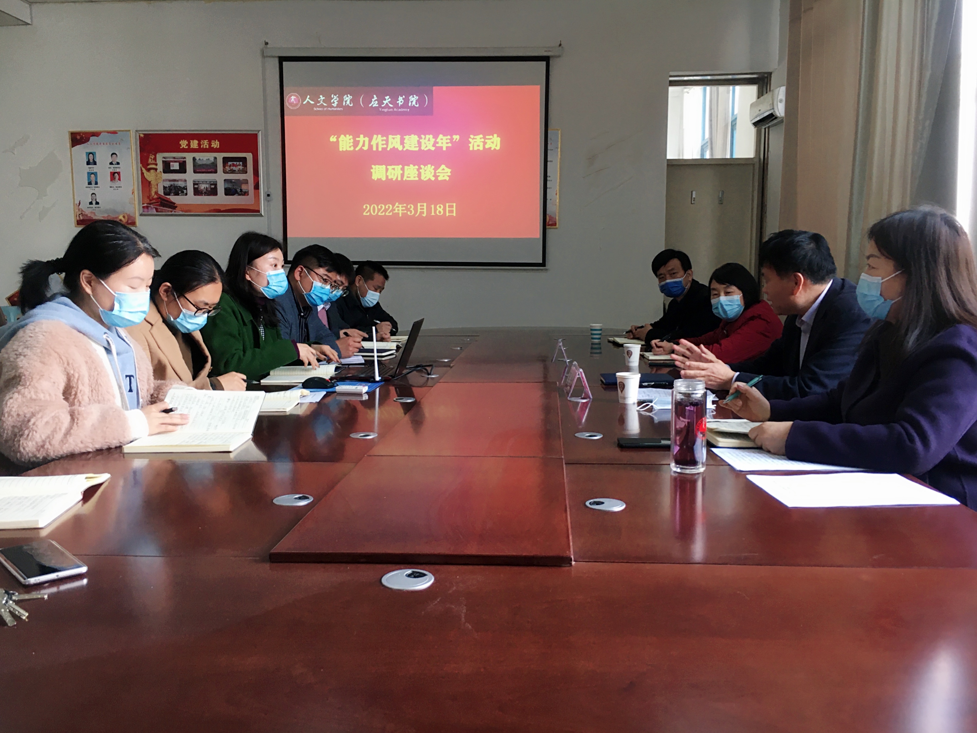 陈晓明就学院开展“能力作风建设年”活动实施方案制定、活动安排部署、意见建议征集、清单台账建立、活动具体推进等工作的开展情况进行了汇报。