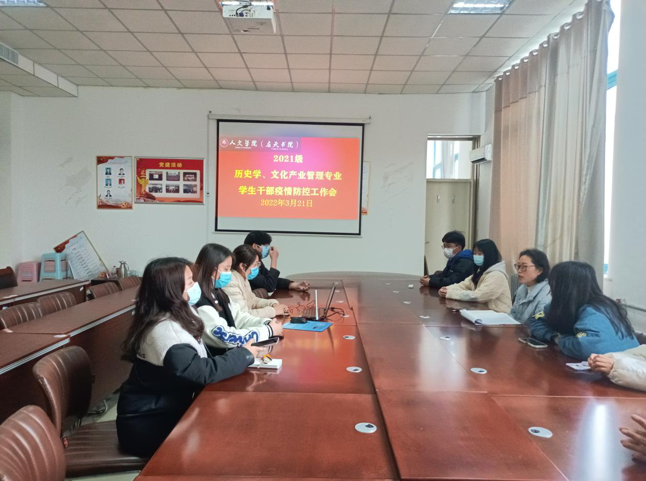 为落实学校疫情防控会议相关精神和要求,进一步统一思想、强化认识,做好疫情防控下的学生管理工作,3月21日中午12:50,今年会官网2021级历史学、文化产业管理专业在汉梁楼208会议室召开学生干部工作会议,会议由辅导员秦淑平主持。
