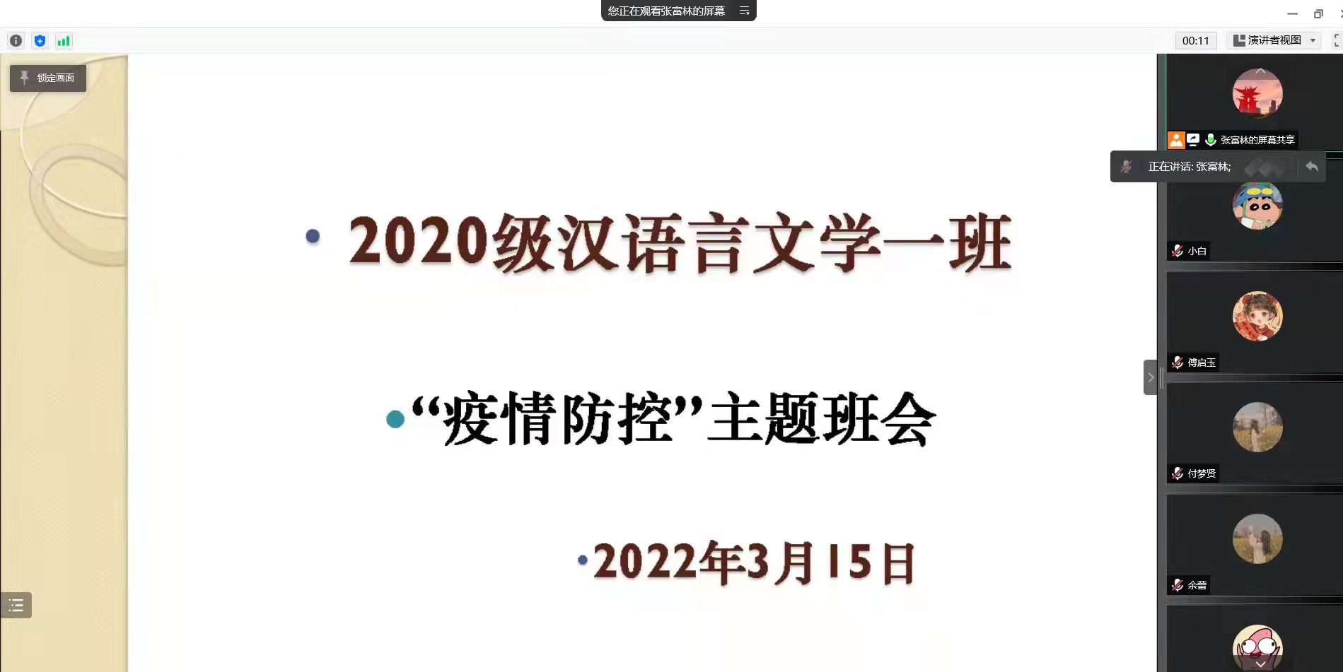 今年会官网各班召开疫情防控主题班会
