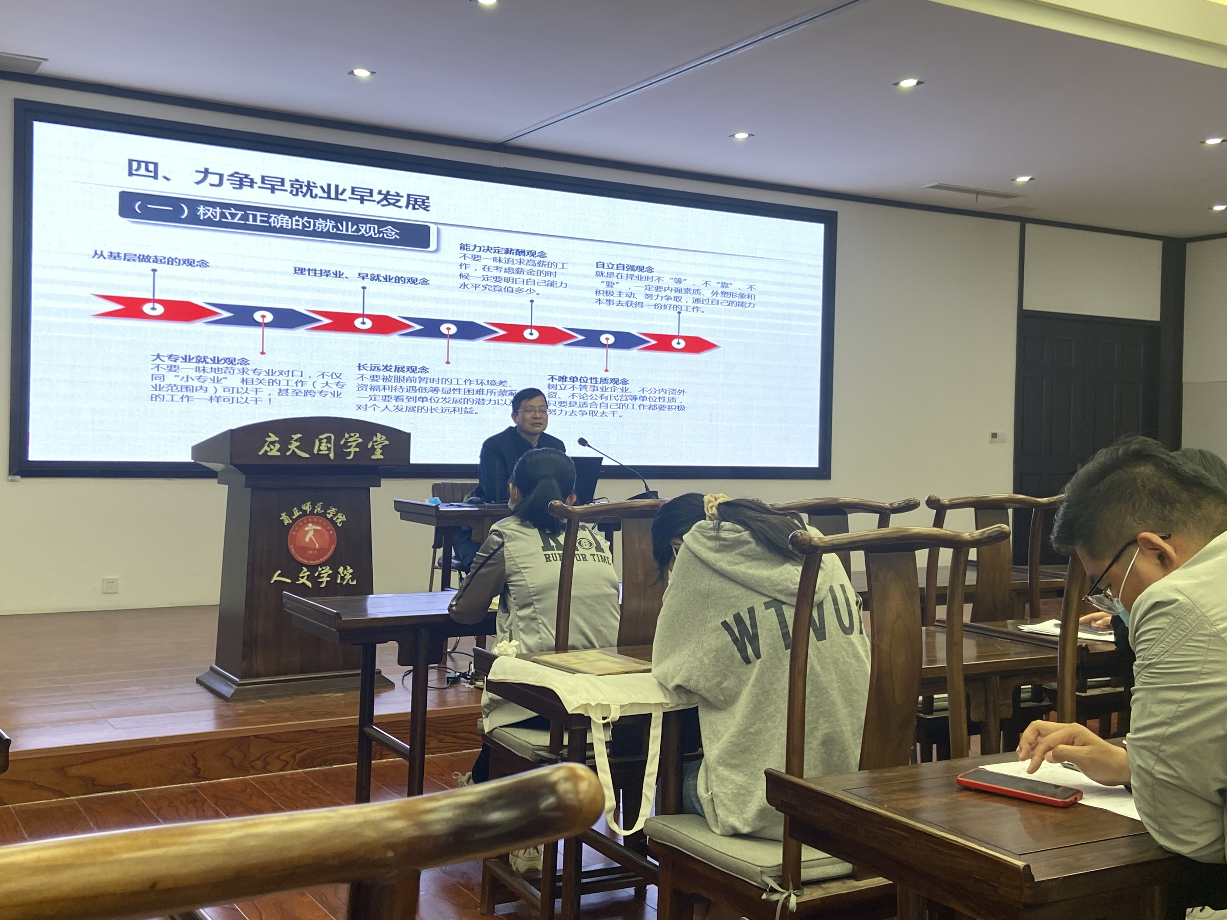 报告会上,程功鹏以《认清形势把握政策力争实现早就业早发展》为题,结合学校2021届毕业生就业情况,对当前大学毕业生就业形势进行分析,让同学们认识到当前的就业形势与自己所面临的困难与挑战,引发了参会学生的共鸣和思考。随后,程校长从基层就业、创业就业和参军入伍等方面对大学毕业生就业政策进行了详细的解读。最后,他强调毕业生要树立正确的就业观念,积极抢抓就业黄金期,主动配合学校及时准备好就业信息填报工作,力争做到早就业早发展。
