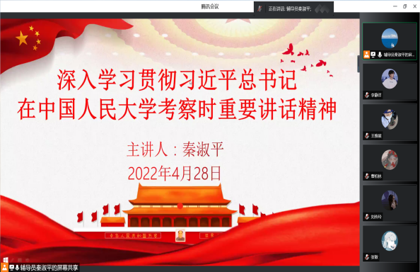 4月29日下午,根据学校统一部署,今年会官网召开覆盖全院学生的深入学习贯彻“习近平总书记在中国人民大学考察时的重要讲话精神”主题班会。会议由学院各辅导员主持召开。