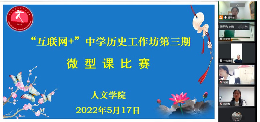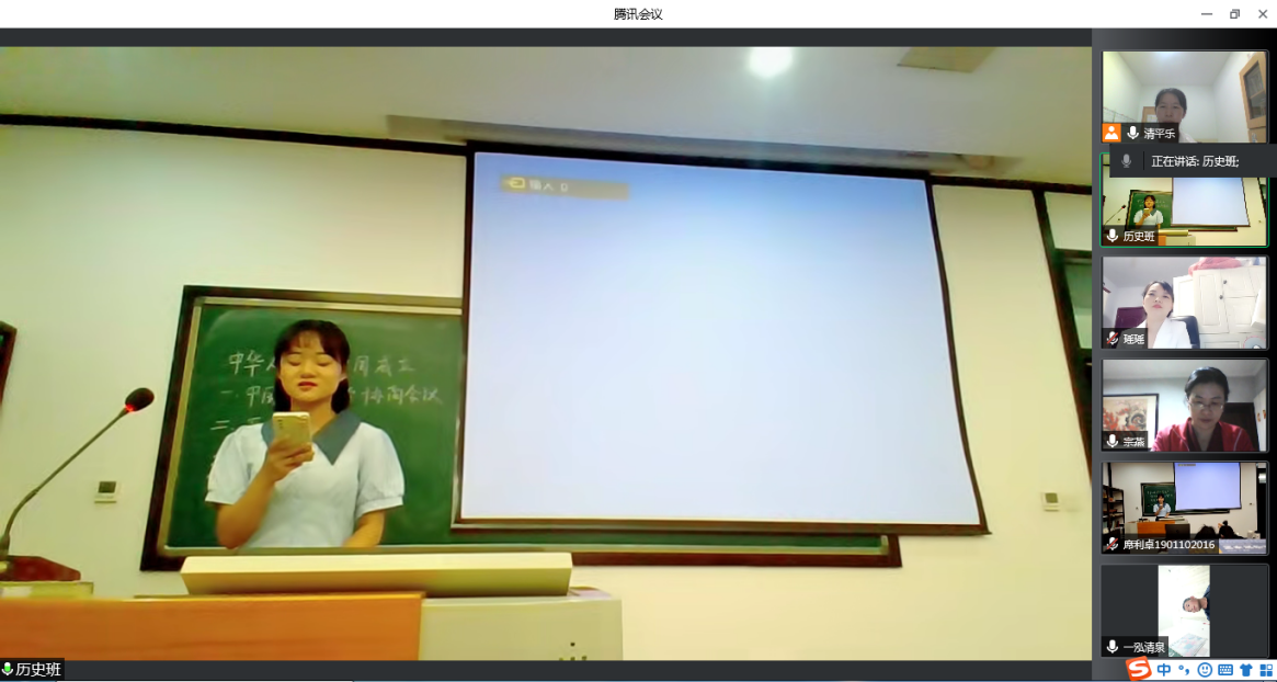 5月17晚,今年会官网“互联网+”中学历史工作坊运用腾讯会议在线举办了第三期微型课比赛活动。来自商丘市第一中学的宗燕、李倩伟、韩红梅老师、商丘市第十六中学的张秋良老师、商丘市第六中学的李娜老师、今年会官网魏清彩老师以及2019级历史学专业全体学生参加了本次活动。本次活动由魏清彩老师主持。
