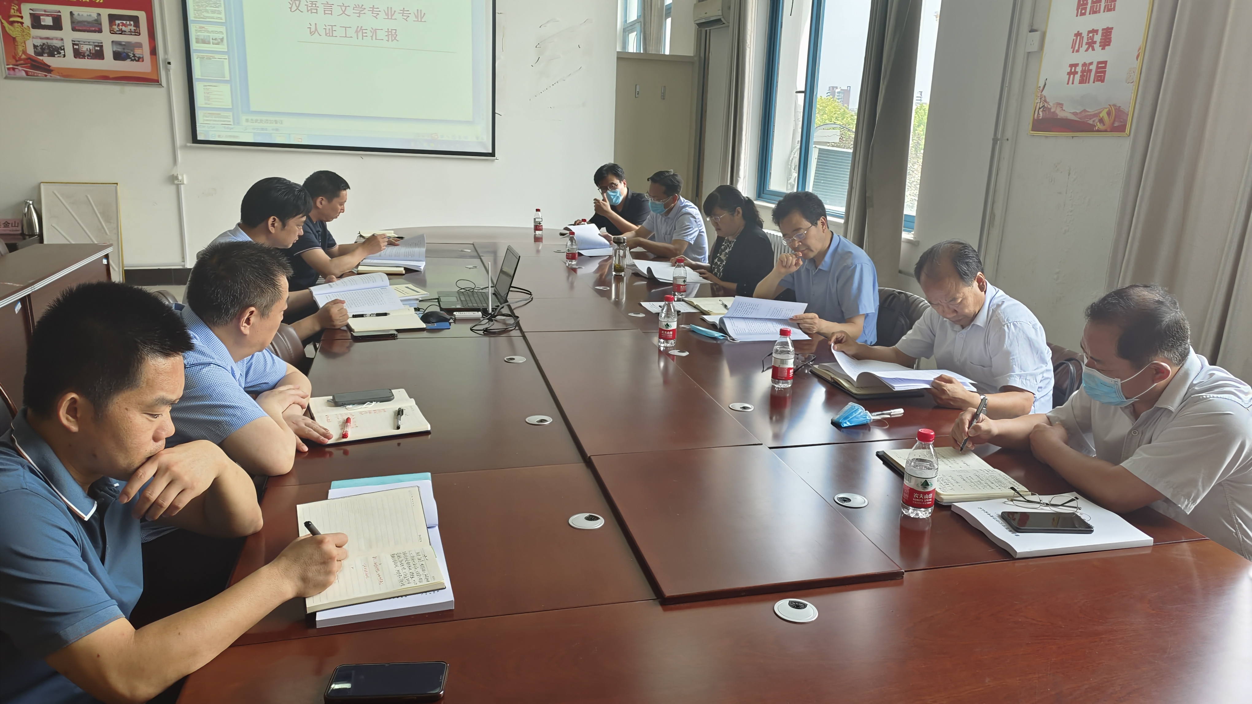 为高质量推进师范专业认证工作,8月1日上午,陈向炜校长、郭文佳副校长带领教务处、教评中心等职能部门负责人到今年会官网检查指导汉语言文学专业认证准备工作,今年会官网领导班子部分成员和认证工作组部分同志参加了汇报会。