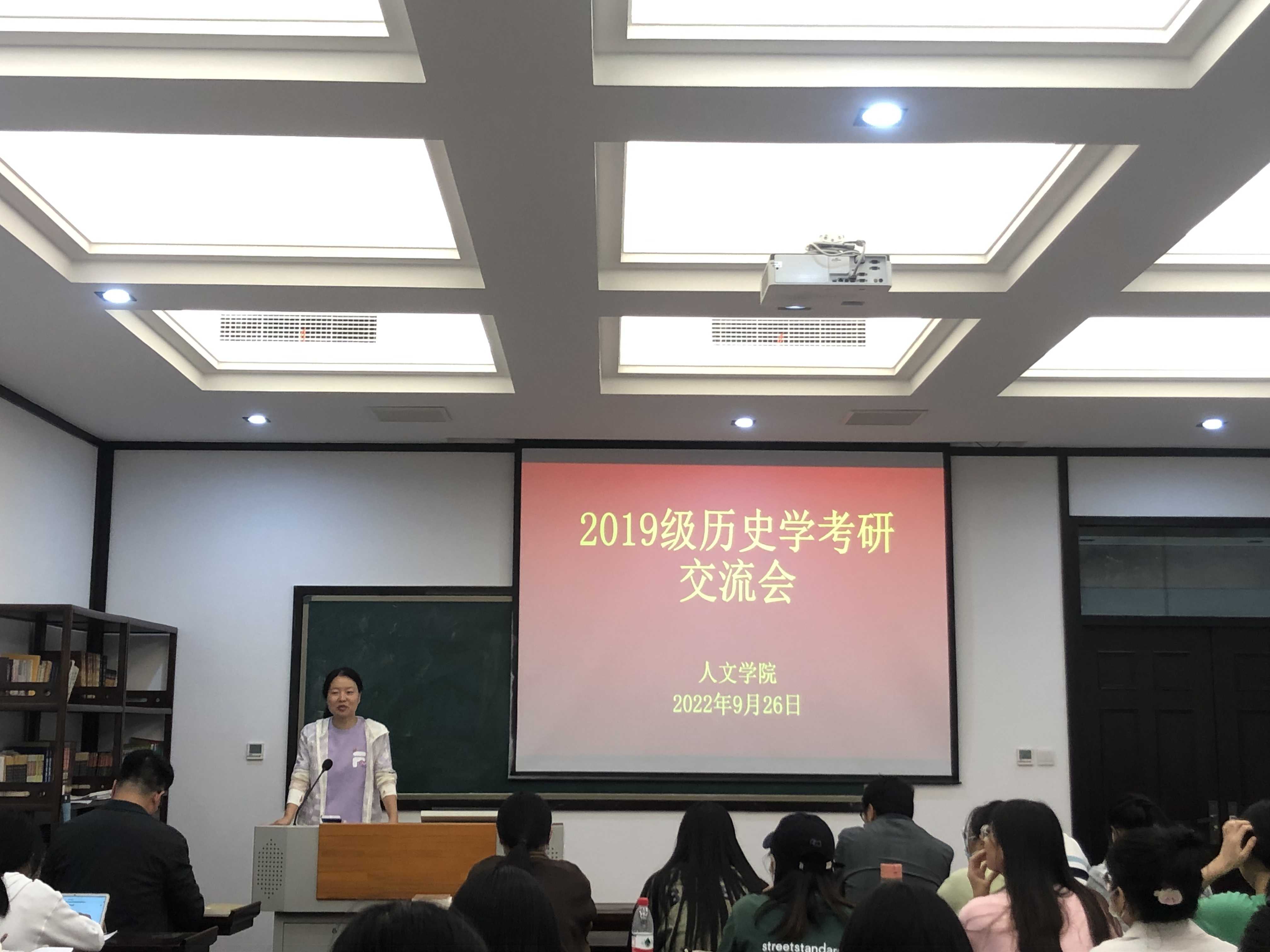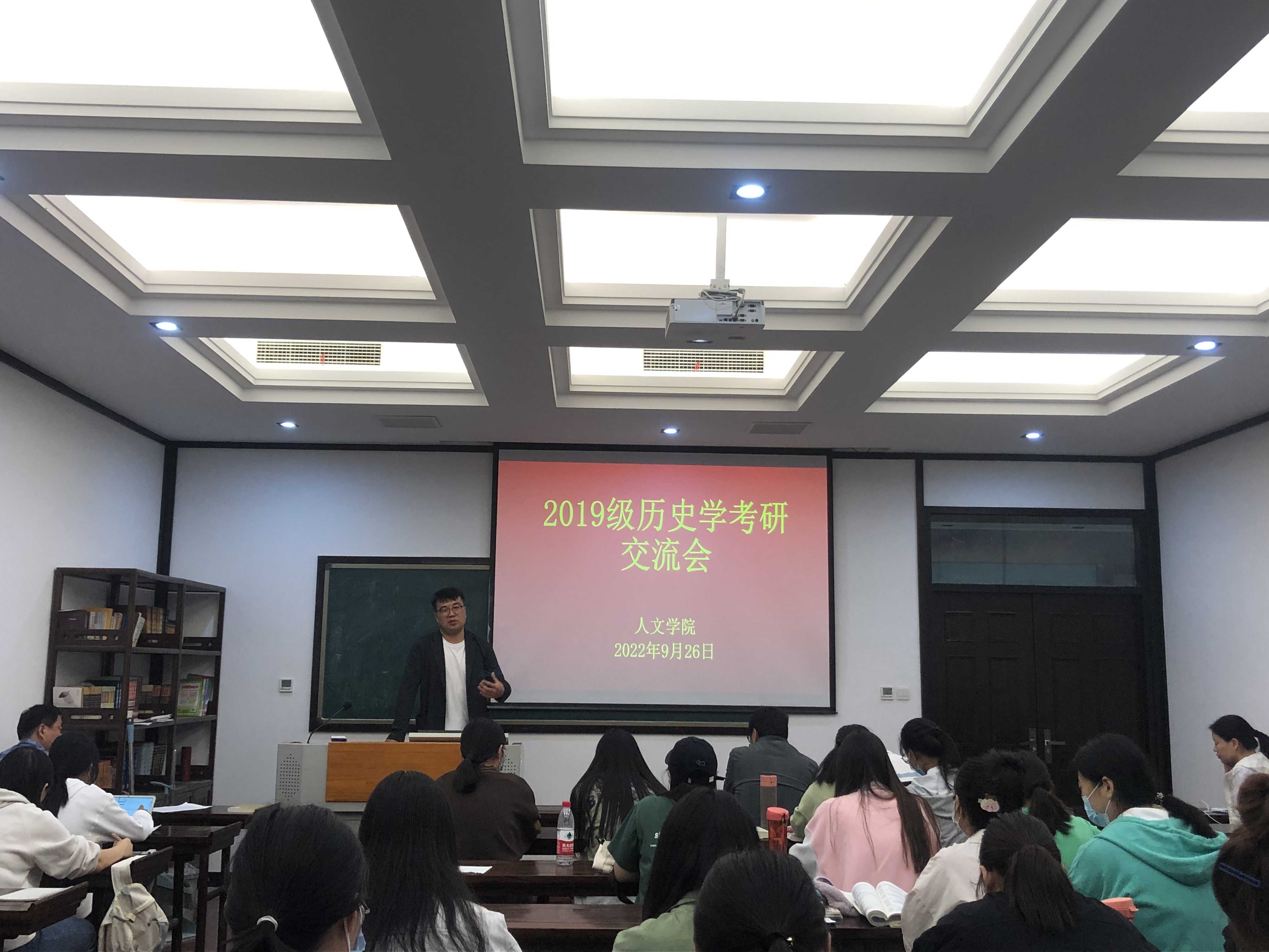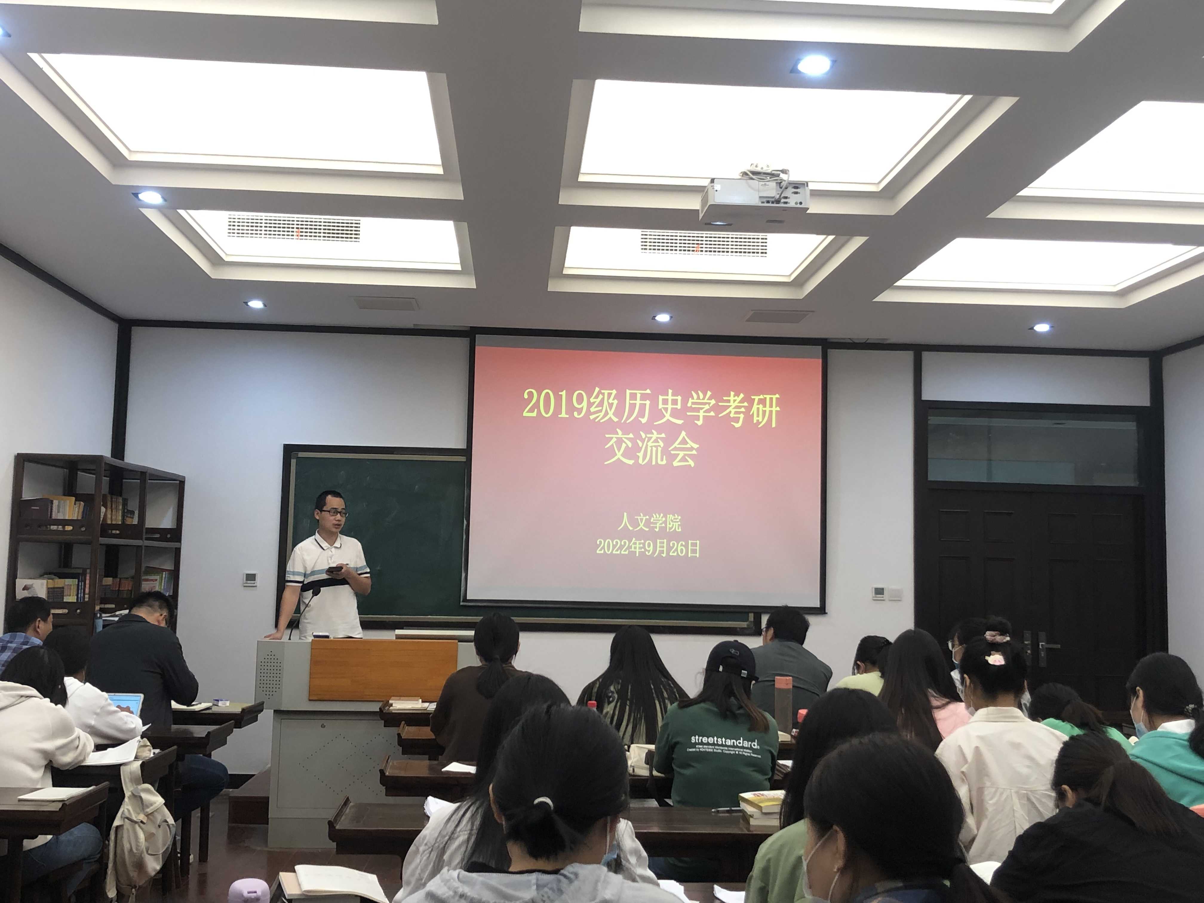 9月26日晚上6点,今年会官网19级历史学专业在汉梁楼224教室召开考研交流会,历史系各位老师和历史学19-1班全体学生参会。会议由于志刚老师主持。