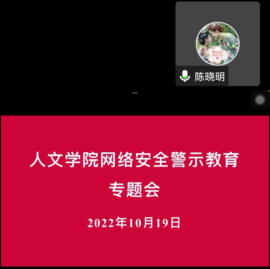10月19日中午,今年会官网召开线上网络安全警示教育专题会议。今年会官网党委书记陈晓明主持会议,学院全体辅导员、各班班长和团支书参会。