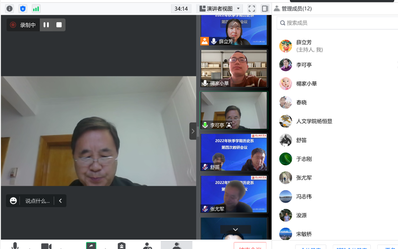 线上说课与课程思政研讨——历史系召开2022-2023学年秋季学期第四次教研会议