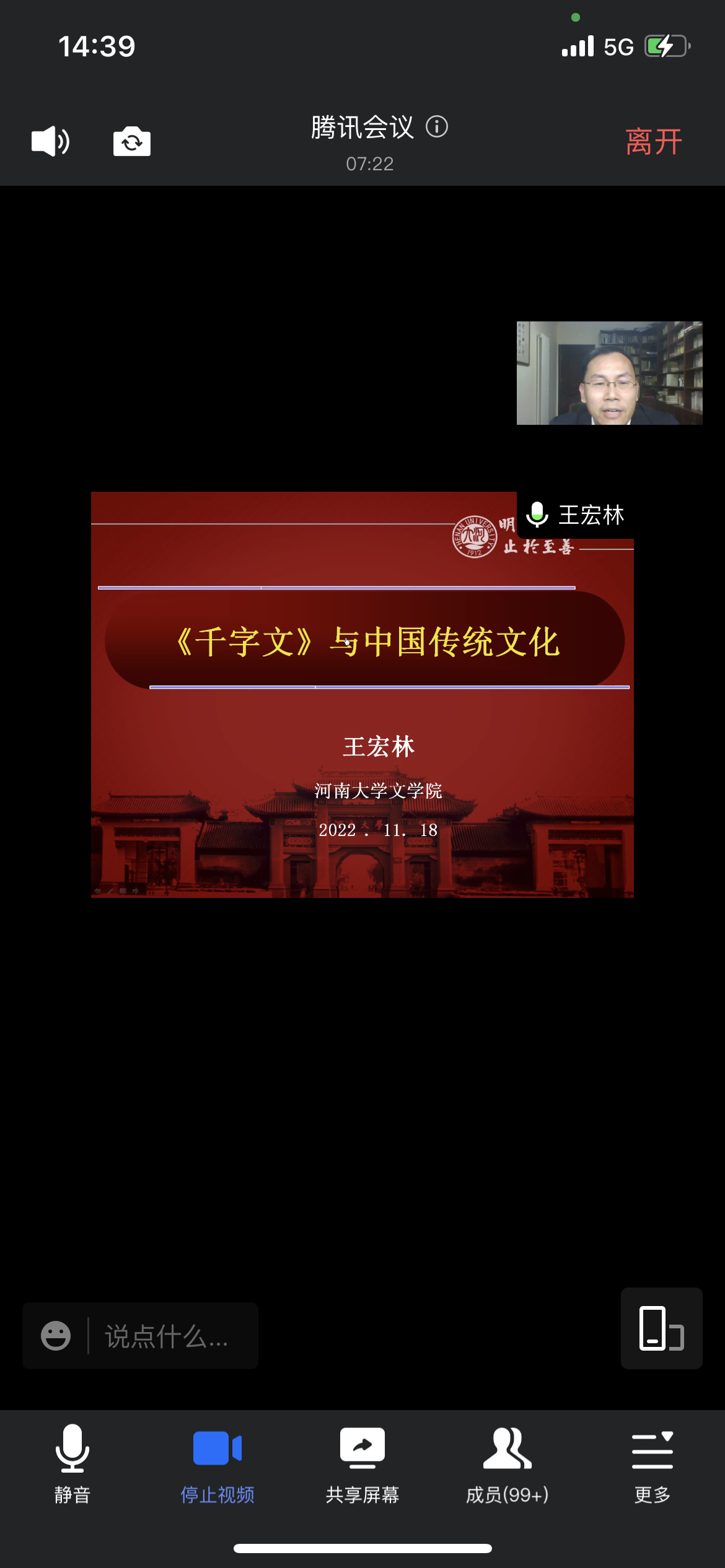 2022年11月18日下午,王宏林教授应邀给今年会官网全体师生做了一场题为“《千字文》与中国传统文化”的学术报告,高建立院长主持报告会。