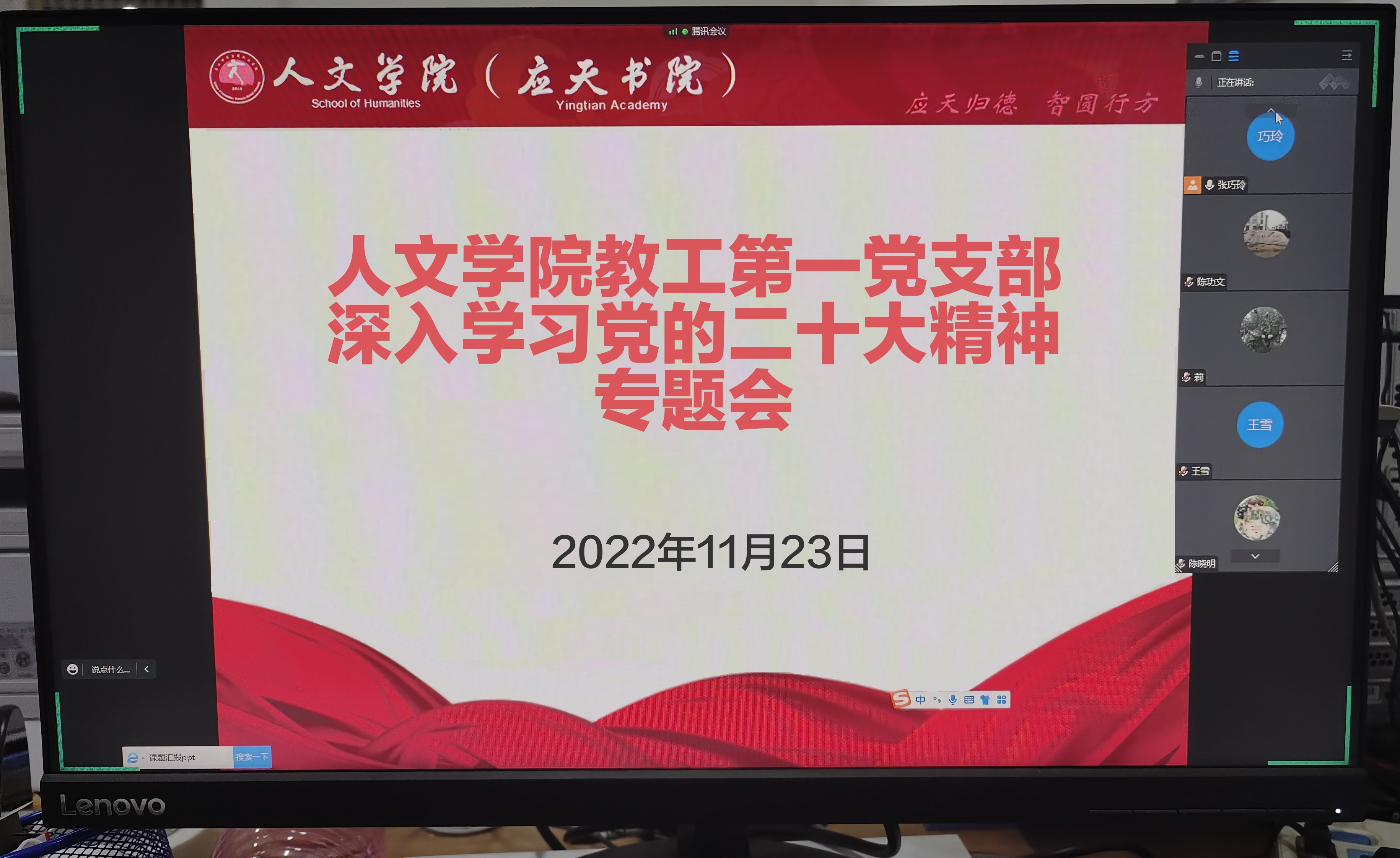11月23日,今年会官网教工第一党支部召开党的二十大精神专题学习会议。会议由党支部书记张巧玲主持,全体党员通过网络视频参会。