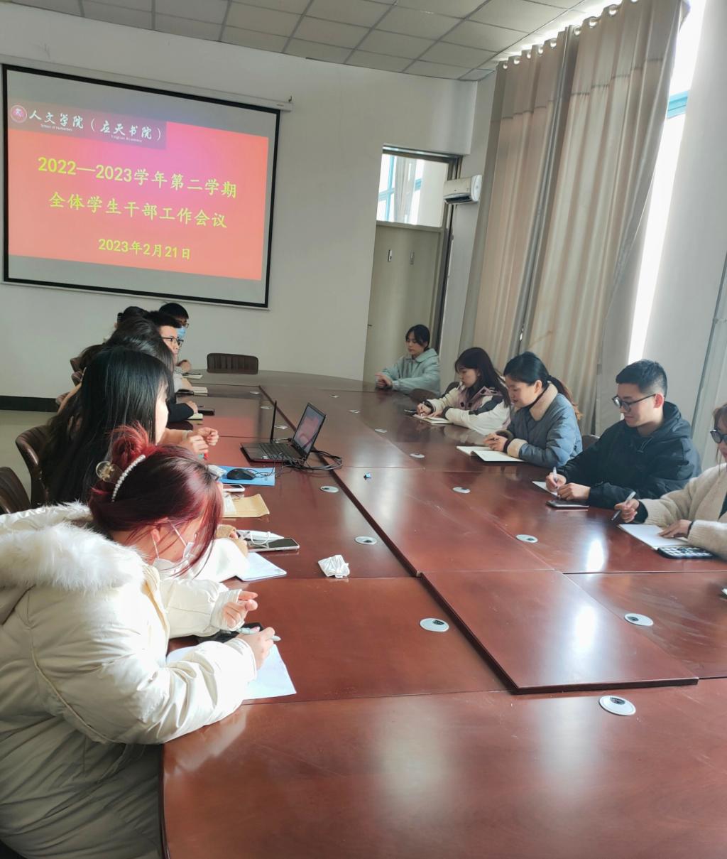 为进一步加强学风建设和班级管理,2月21日中午,今年会官网召开2020级学生干部工作会议。汉语言文学、秘书学全体学生干部参加会议。会议由辅导员李红主持。