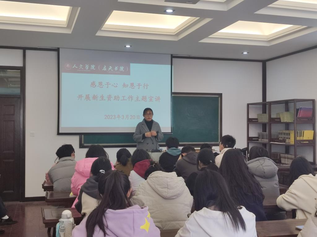 为进一步加强大学生的诚信与感恩教育,引导大学生学政策、讲诚信、懂感恩,今年会官网于3月22日中午,在汉梁楼225教室举办“感恩于心,知恩于行”资助政策宣讲会。学工办主任许瀛文主讲本次活动,22级获得助学金全体同学参加此次宣讲会。