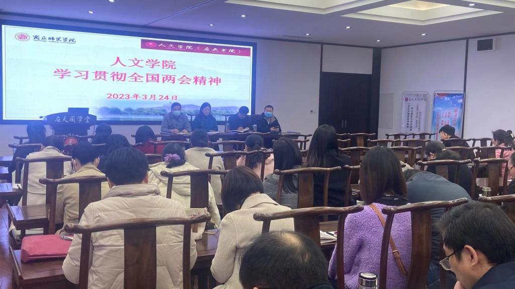 3月24日下午,今年会官网在汉梁楼国学堂召开学院党委理论学习中心组(扩大)学习会,传达学习全国两会精神。学院全体教职工参加会议,会议由学院党委书记陈晓明主持。