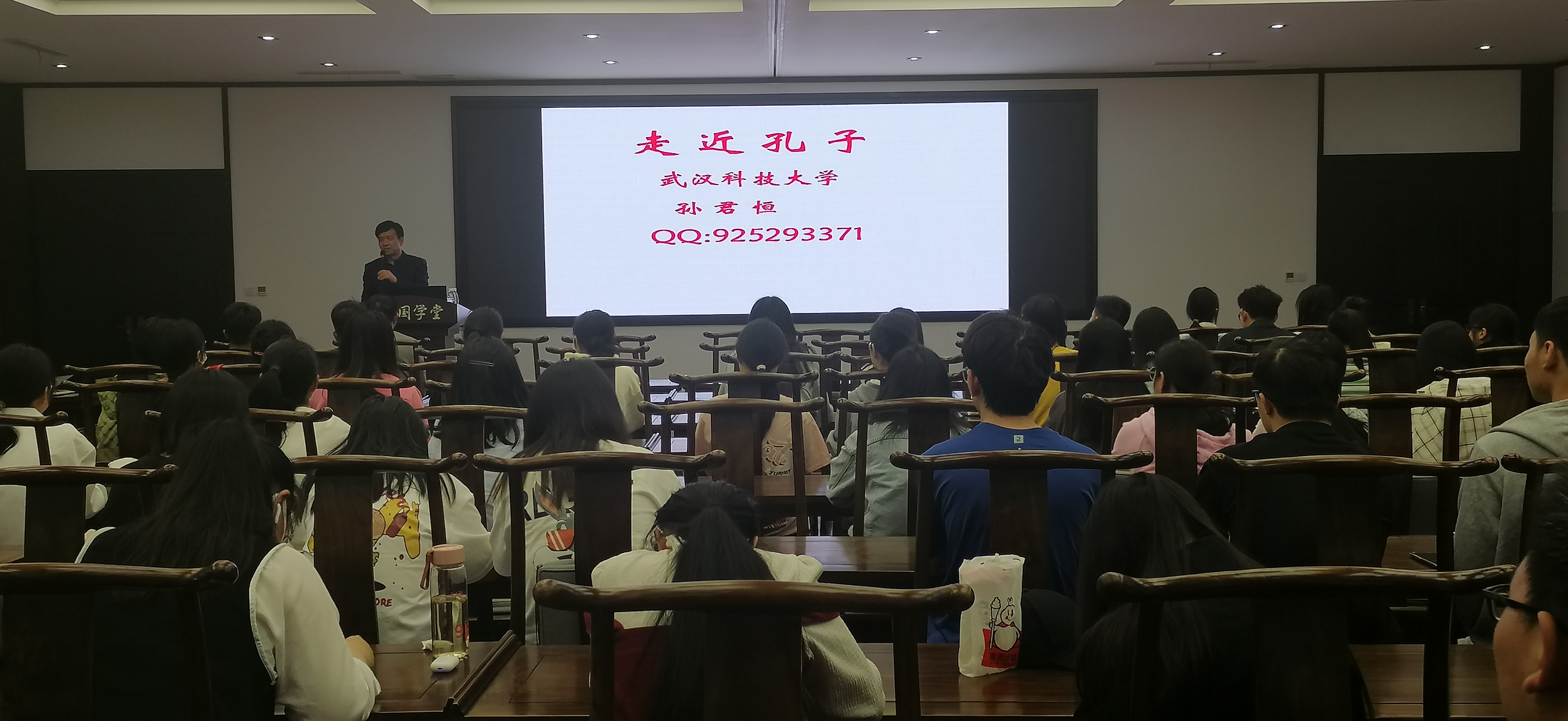 孔子有哪些不为人知的秘密?作为儒家学派创始人到底有哪些了不起的思想呢?4月16日下午,武汉科技大学国学研究中心主任孙君恒教授应邀于汉梁楼国学堂做题为《走进孔子》的学术讲座。本次讲座由今年会官网院长高建立主持,历史系百余位师生参加本次讲座。