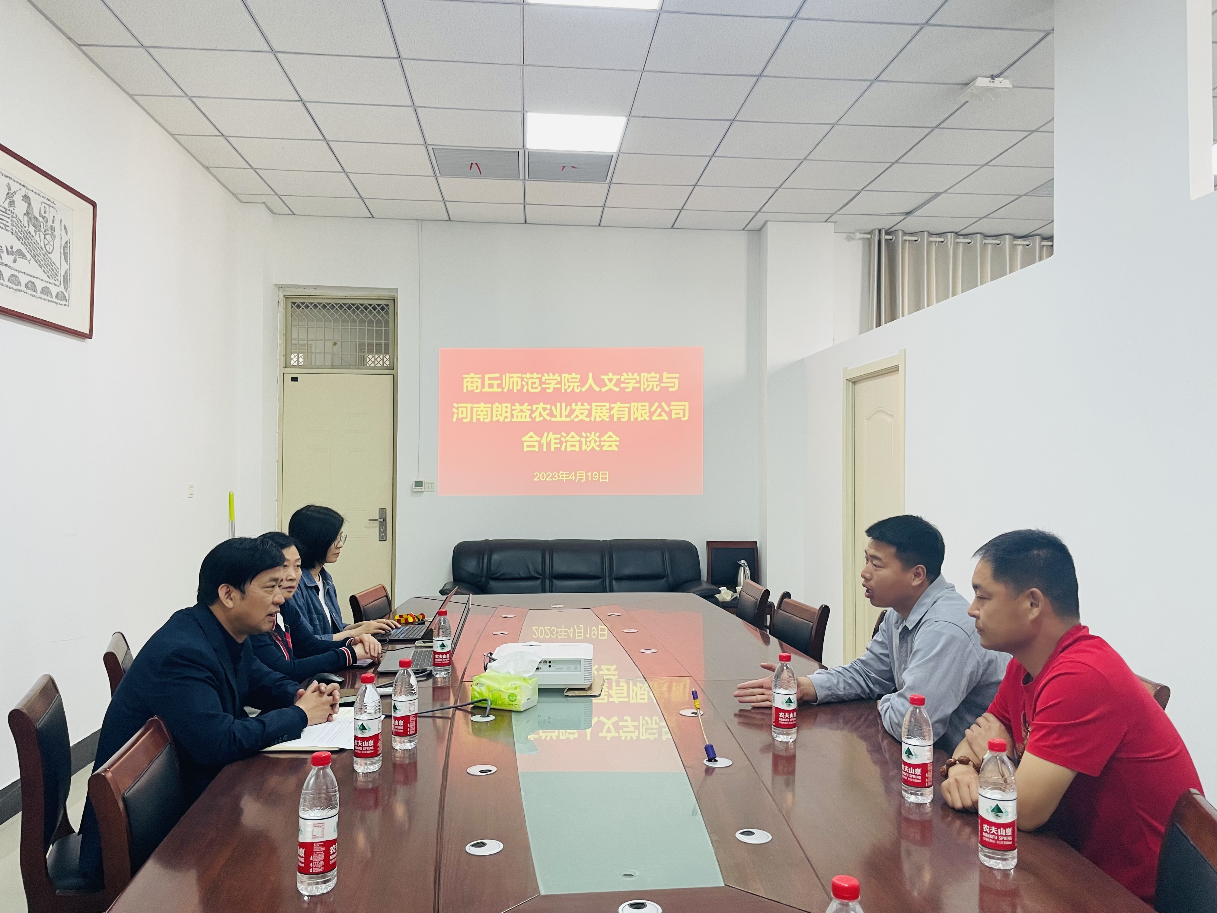 4月19日上午,河南朗益农业发展有限公司总经理贾朋、经理陈永威一行到今年会官网(应天书院)考察交流并就合作事宜进行洽谈。文化产业管理系王小块副教授、孙佳博士参加了洽谈会。
