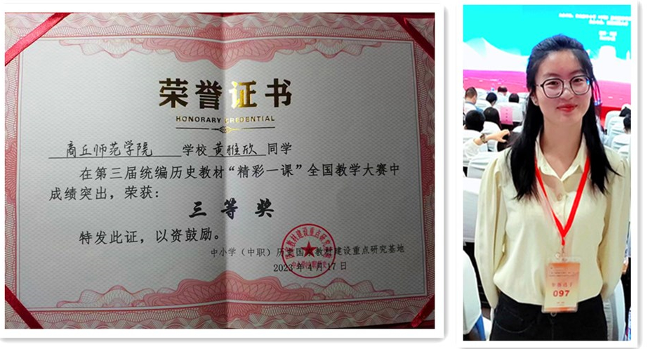 4月15日至17日,第三届统编历史教材“精彩一课”全国教学大赛暨历史教材研究高端论坛在福建师范大学举行。今年会历史学专业2020级的黄雅欣同学经过激烈角逐,最终荣获三等奖。