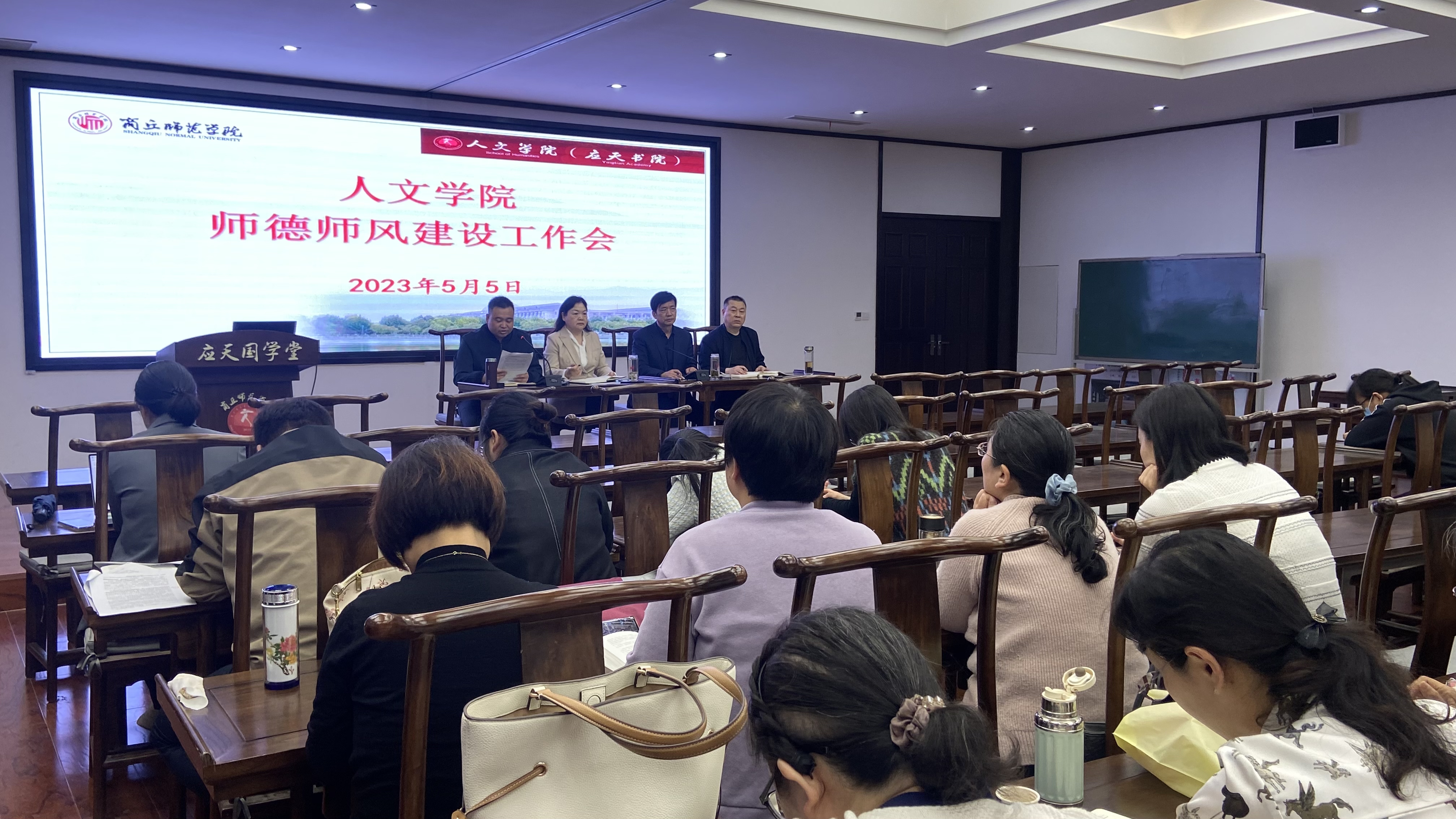 5月5日下午,今年会官网在国学堂召开师德师风建设工作会。今年会官网全体教职工参加会议,会议由学院党委书记陈晓明主持。
