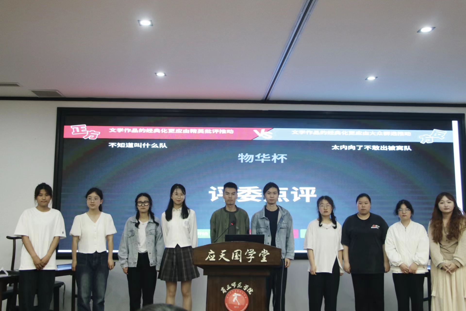 本次比赛分为四组,八队辩手针对“当代社会经典阅读与大众文化孰对大学生素质提升更重要”“西天取经是齐天大圣的自我找寻还是自我迷失”等辩题展开辩论。比赛伊始,双方运用理论引出自己的观点,立论措辞严谨,用语生动。随后,正反方均结合典型事例对己方观点进行了细致入微的分析概括,各支队伍成员默契配合,发言绘声绘色,旁征博引,就辩题进行了更深层次的辩论。驳论环节,一来一往,紧张的气氛使人惊心动魄,自由交辩时间,双方各辩手轮番输出观点,侃侃而谈,口若悬河。随着屏幕上倒计时的清零,辩论环节结束,评委以专业的辩论素养以及中肯精辟的语言对正反双方进行点评。最后,主席宣布比赛结果,共有四支队伍从激烈的比赛中脱颖而出,晋级至下一赛程。纵观比赛总过程,选手们雄辩滔滔、妙语连珠,台下同学凝神聆听、掌声不断,精彩写满每一时刻。
