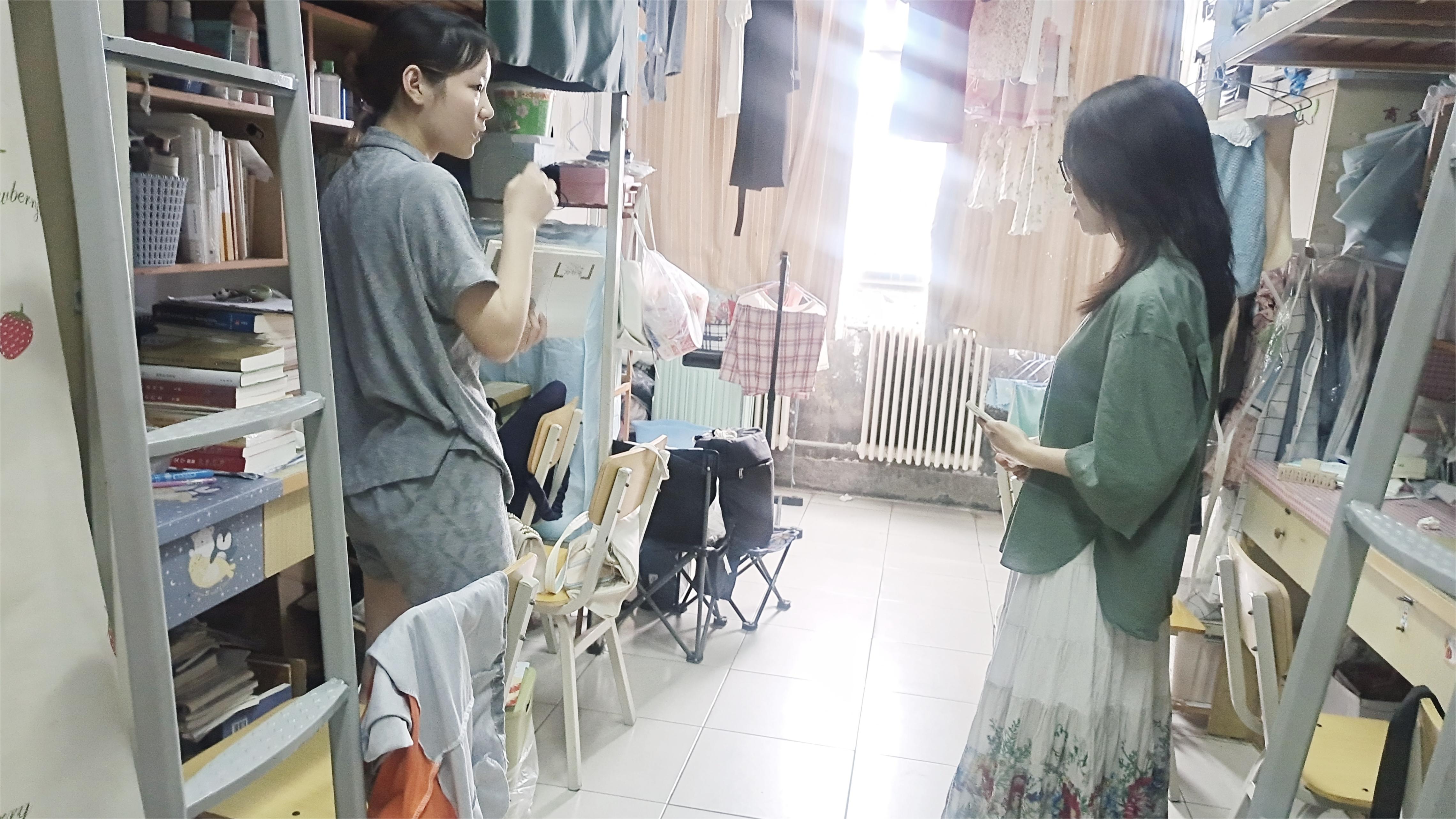 毕业班辅导员李红、崔方楚老师来到学生宿舍、考研教室教室,了解学生需求,为学生进行心理健康辅导,缓解学生备考压力,同时进行宿舍安全风险排查、进行防诈骗宣传等教育活动。
