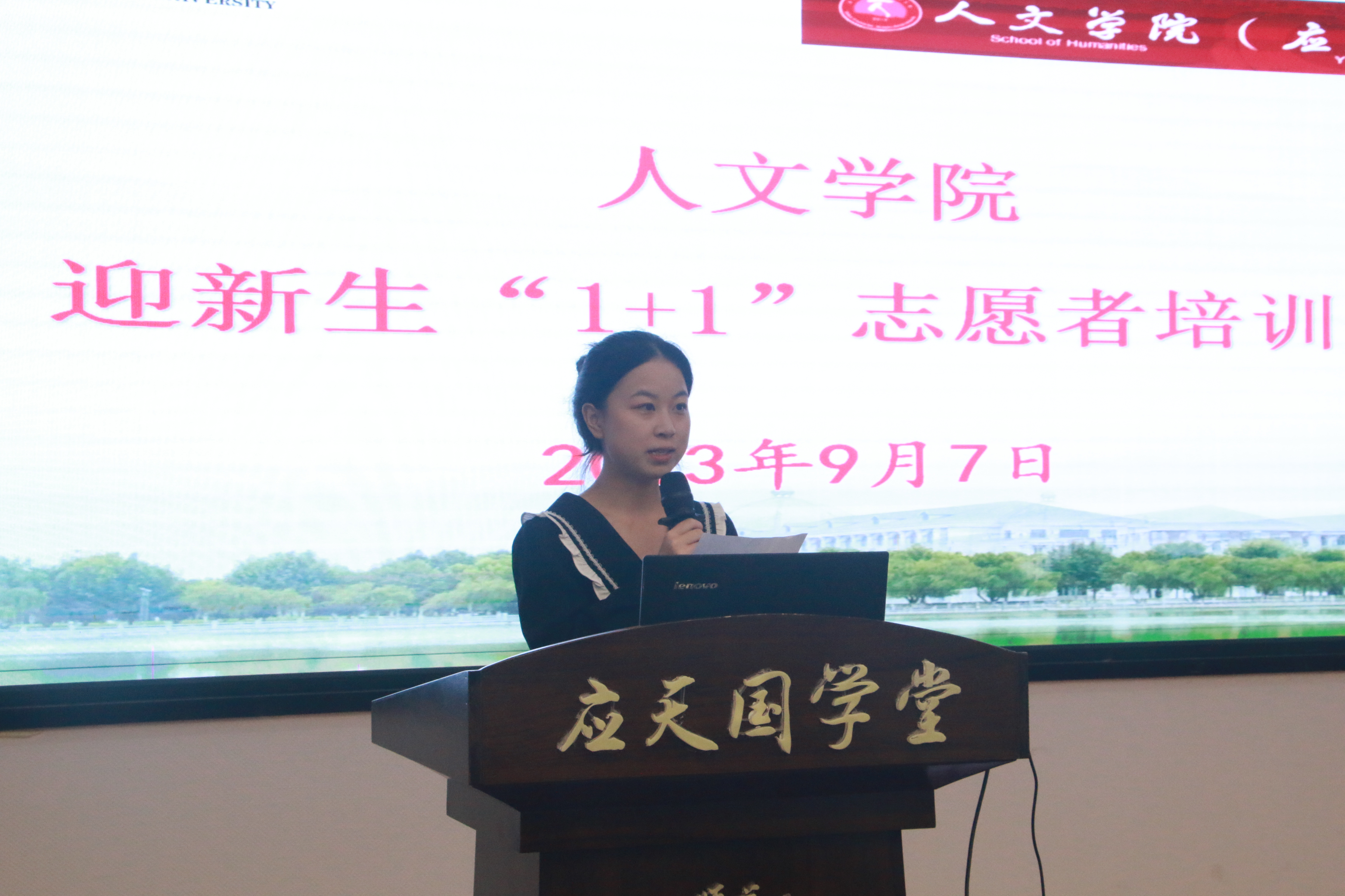 为增强志愿者的服务意识,确保2023级新生迎新工作的有序开展,今年会官网于9月7日在汉梁楼国学堂召开2023年迎新生“1+1”志愿者培训会。今年会官网团委书记李红、学工办主任许瀛文和2023级新生辅导员王超及各班级迎新生志愿者参加会议。会议由策划部部长李晶晶主持。