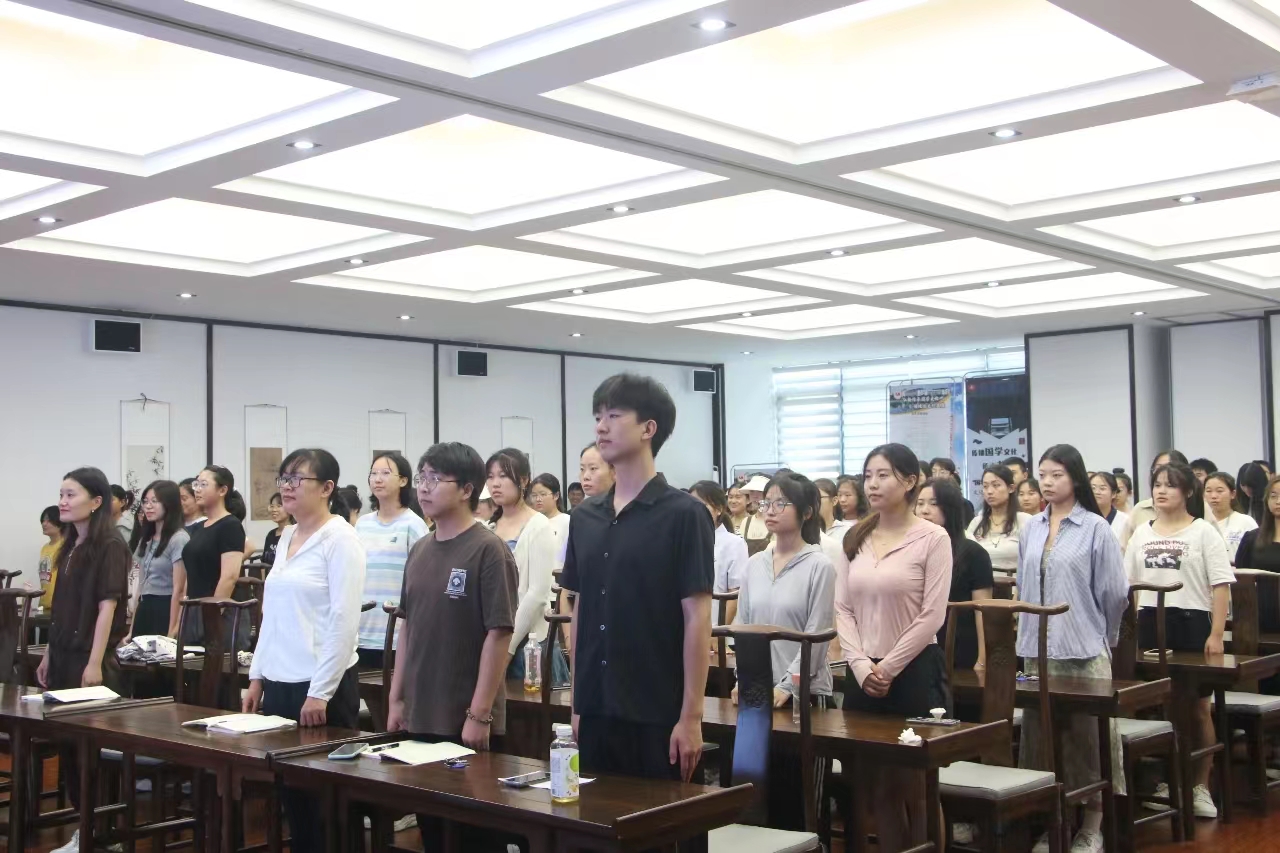 接着,李晶晶带领志愿者宣誓并将新生的校园卡、宿舍钥匙等物品分发到各个志愿者手中。至此,本次培训会议圆满结束。